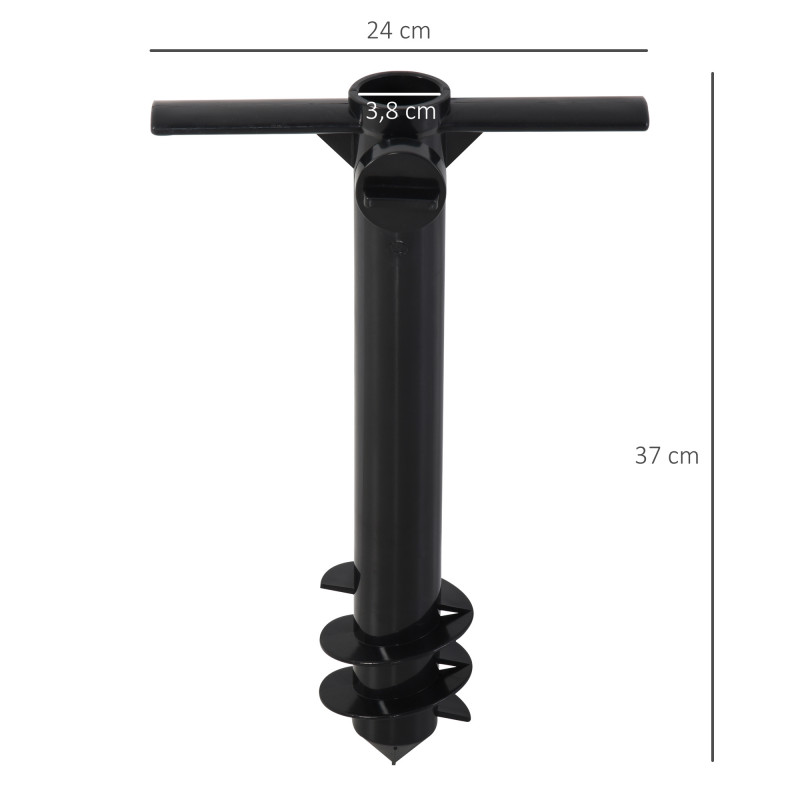 Simple à utiliser et pratique, le pied de parasol à planter Véra de MYCOCOONING rend bien des services. Il permet d'être inséré dans tous types de sols non rigides en le vissant et aussi bien dans son jardin, au camping ou sur la plage. Il a été conçu pour convenir aux diamètres de mâts allant de 22 à 38mm. Sa poignée en T facilite la prise en main et son utilisation. Elle permet de diminuer l'effort à fournir pour créer une base stable et solidement ancrée pour votre parasol. Ce pied de parasol à planter & été conçu et fabriqué en ABS, un matériau rigide, facile à entretenir et d'une durée de vie pérenne. Coloris : noir Matériau : ABS Dimensions totales : 37L x 24l cm Diamètre : 38 mm pour parasol Ø 22-38 mm Livraison effectuée en un colis