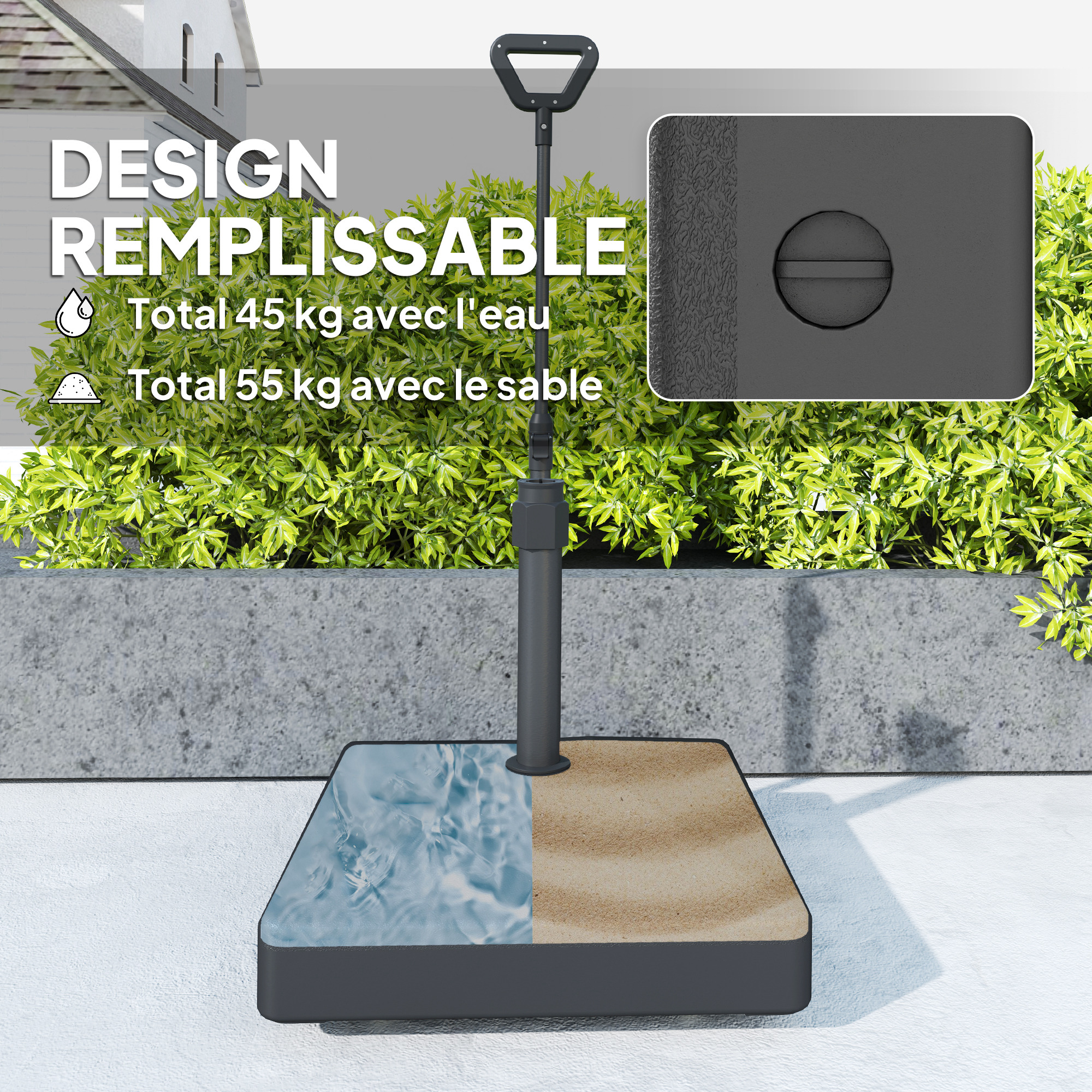 Pied de parasol avec poignée ajustable et roulettes - lestage eau sable - dim. 60 x 60 x 100 cm - HDPE no
