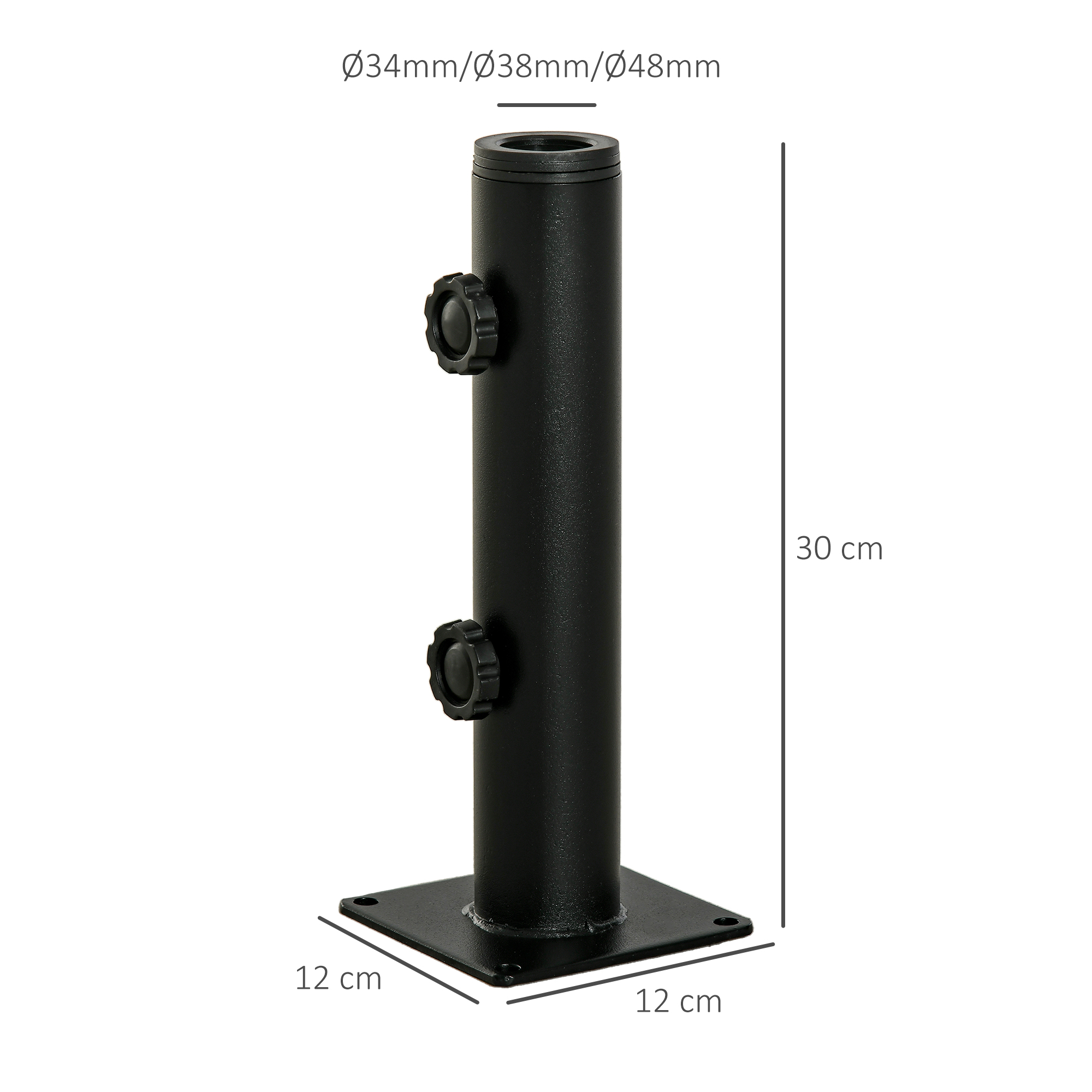 - Ce pied de parasol convient aux parasols avec des mâts de diamètre 34, 38, 48 mm