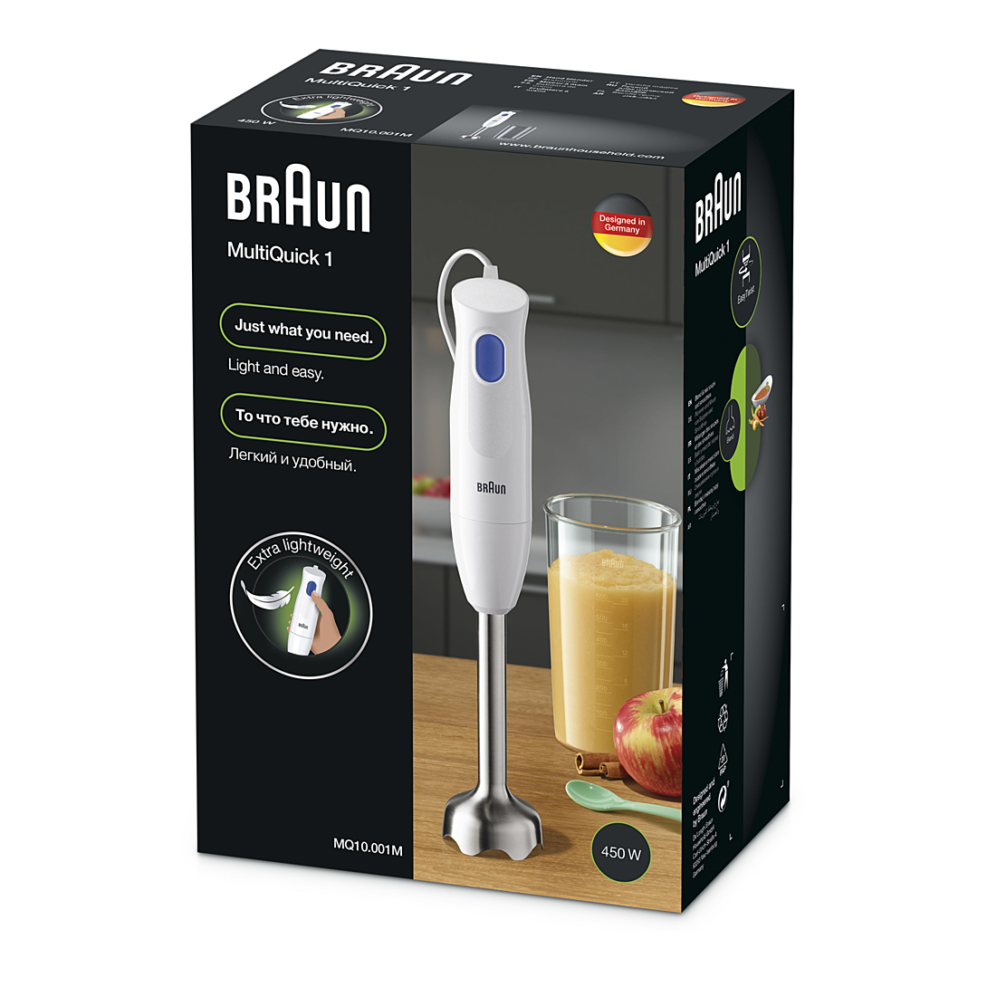 Extra léger : Le mixeur plongeant le plus léger de Braun pour effectuer des tâches avec un minimum d'effort. Facilité d'utilisation en un clic. Système EasyTwist : Changez ou retirez les accessoires de manière simple et rapide. Puissance : 450W Lavable au lave-vaisselle