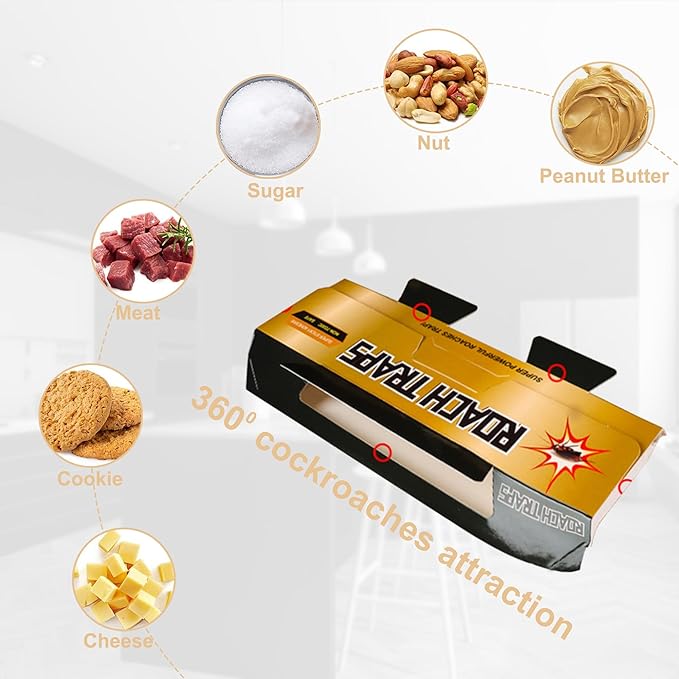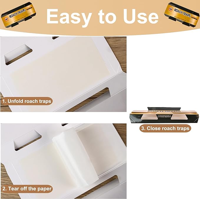 Conception pliable pratique : Conçus pour plus de commodité, ces pièges à cafards présentent une conception pliable pour un transport et un stockage faciles. Ils sont préchargés avec un attractif pour cafards, aucun appât supplémentaire n'est requis et sont prêts à l'emploi dès la sortie de la boîte.