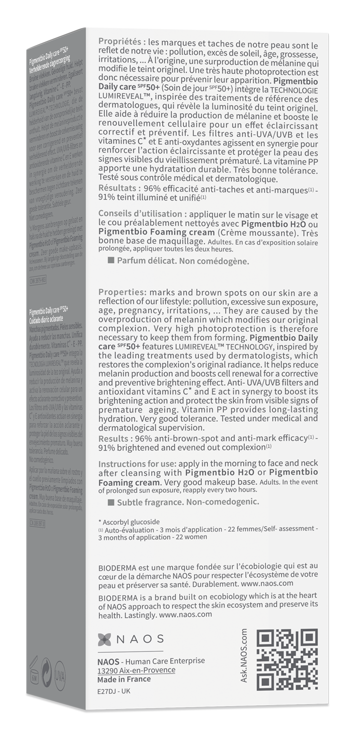| Libellé | PIGMENTBIO Daily Care SPF50+ 40 ml |