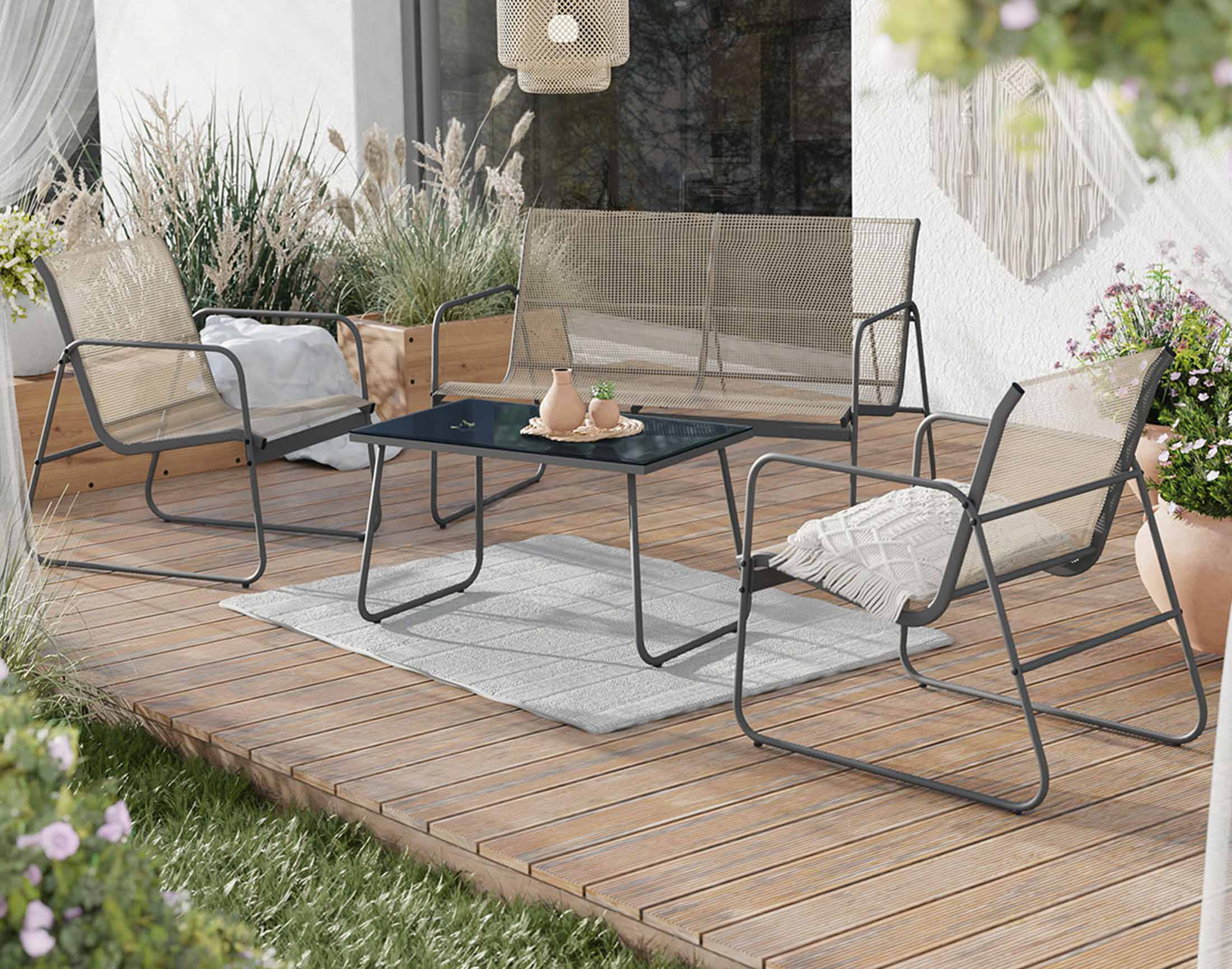 Plus produit [Pilar - salon bas de jardin 4 places - métal et résine tressée] Composé de plusieurs assises confortables et d’une table, ce salon crée un espace convivial en extérieur. [Confort extérieur] Coussins épais et moelleux pour accompagner vos pauses en terrasse ou au jardin. [Table incluse] Table basse assortie pour poser boissons, livres ou objets décoratifs lors de vos moments en plein air. [Usage extérieur] Matériaux résistants aux intempéries, adaptés à un usage en terrasse ou jardin. [Montage rapide] Livré avec notice claire pour un assemblage facile et sans outils complexes.