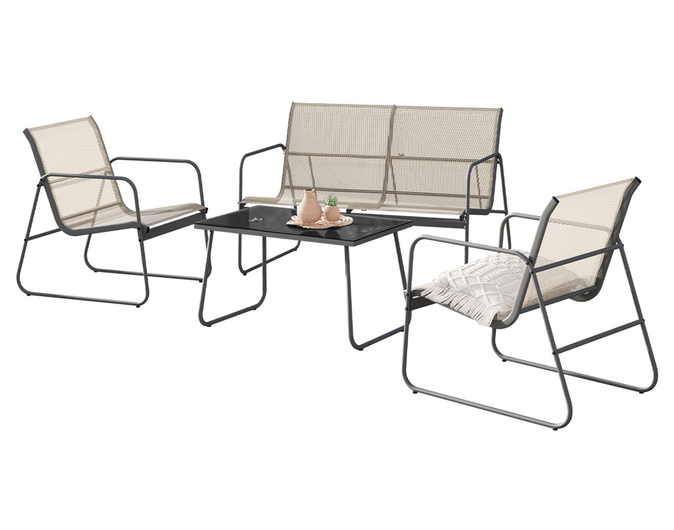 Pilar - salon bas de jardin 4 places - métal et résine tressée