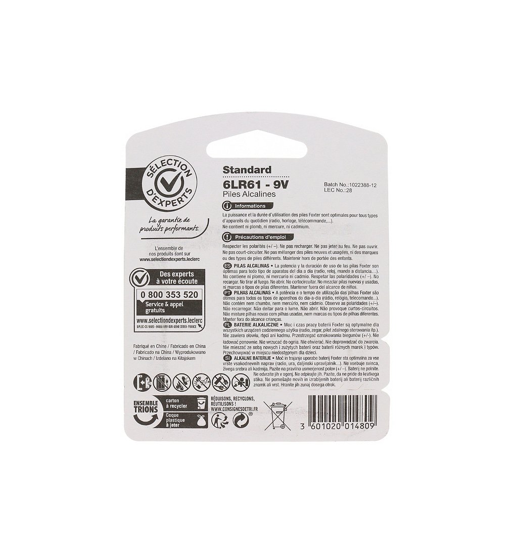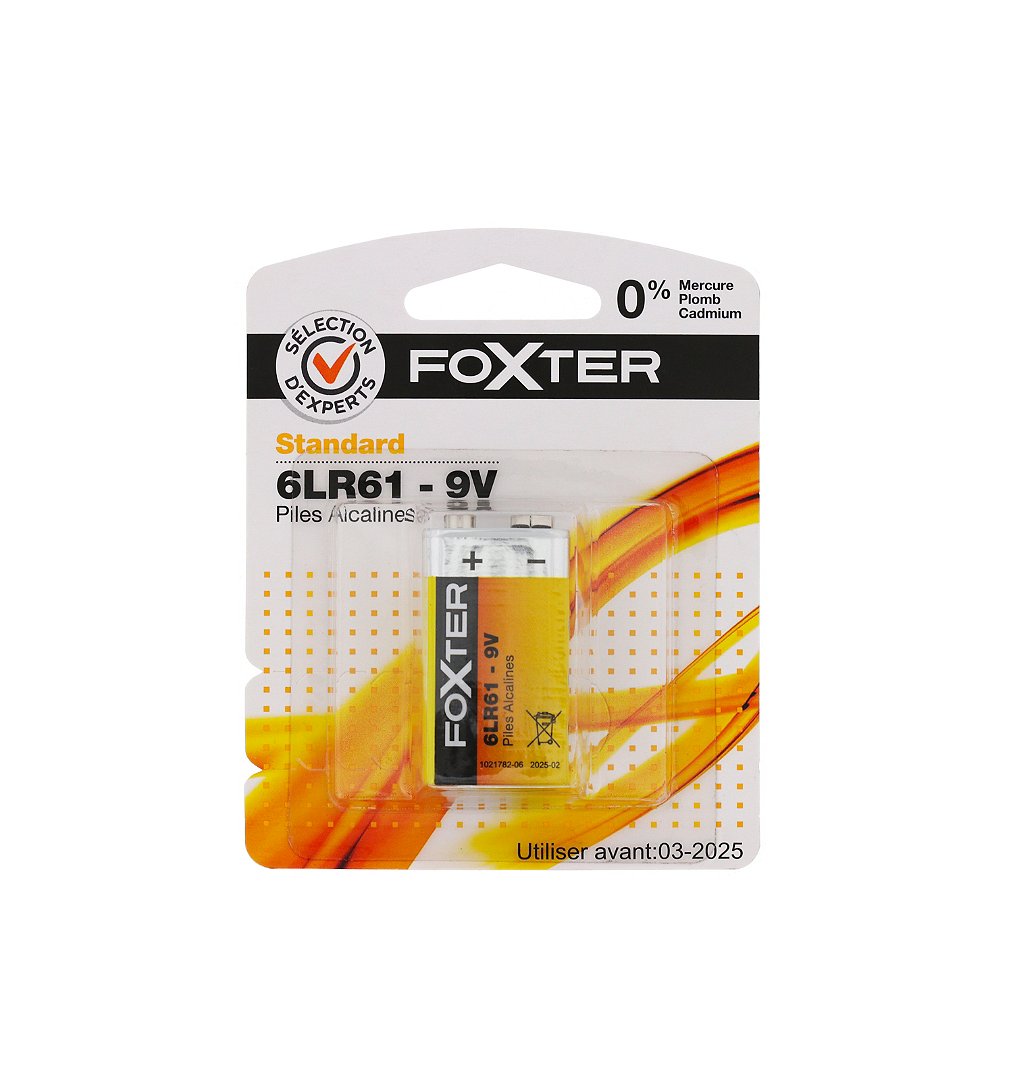 | Libellé | Pile alcaline 6LR61 9V - Standard - Sélection d'Experts - Foxter |