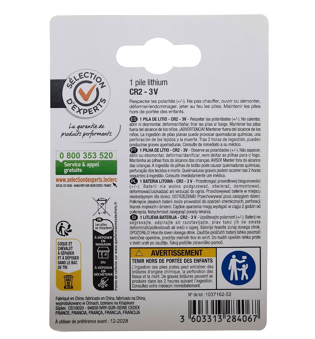 | Libellé | Pile CR2 3V - Sélection d'Experts - Foxter |