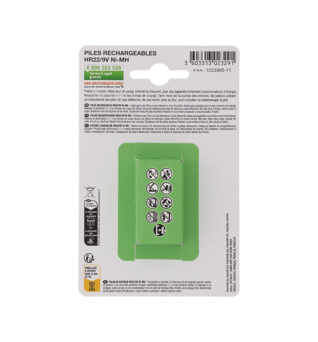 | Libellé | Pile rechargeable HR22/9V 200 mAh - Sélection d'Experts - Foxter |