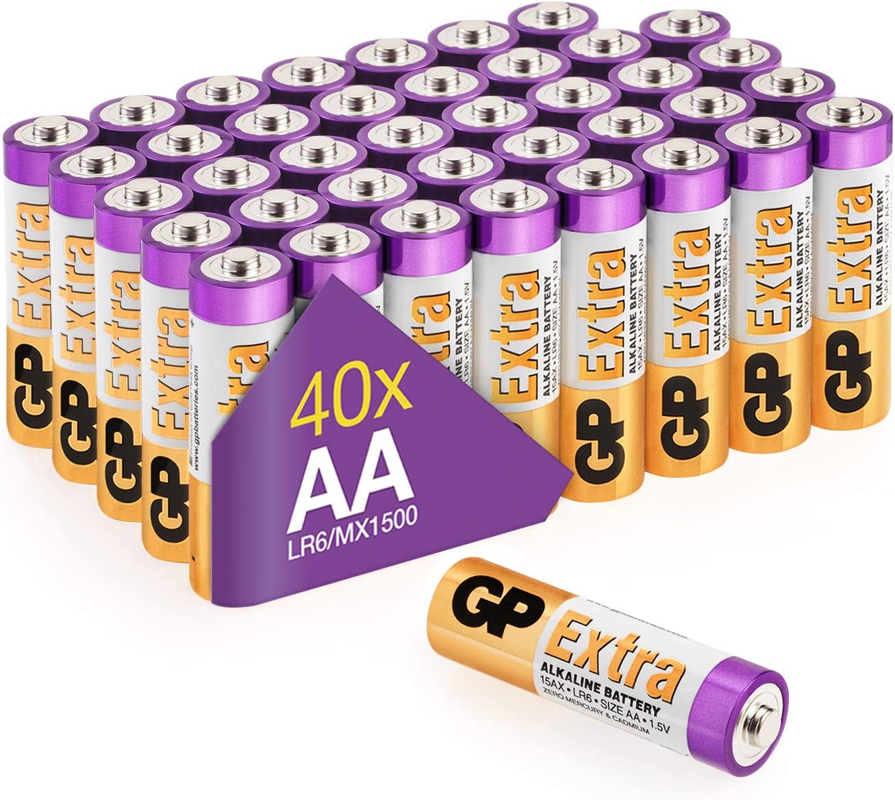 Piles AA - Lot de 40 Piles | GP Extra | Batteries Alcalines AA LR6 1,5v |Longue durée, très puissantes, u