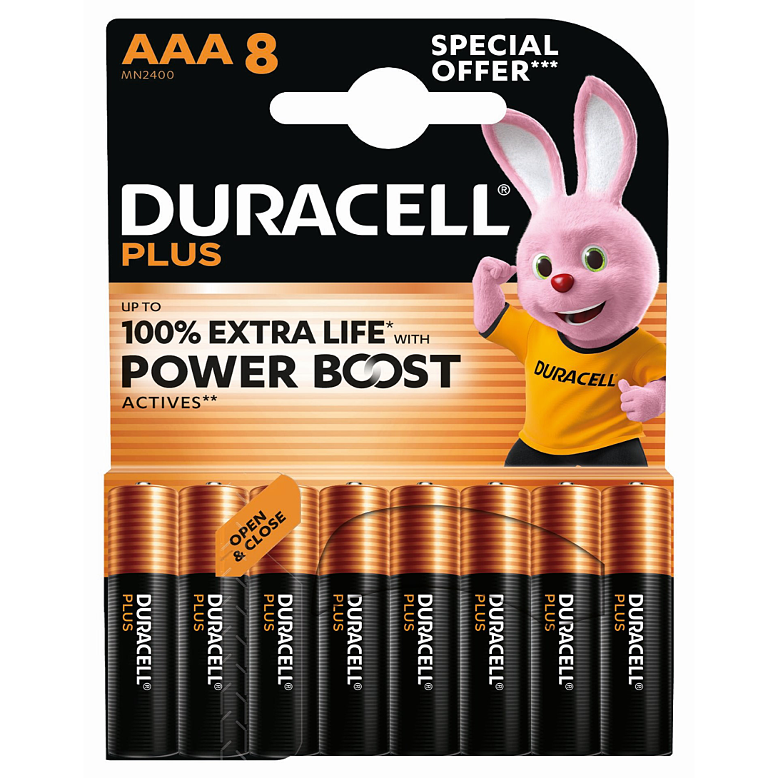 | Libellé | Piles AAA Duracell Plus x8 Spécial Offer - Alcalines 1,5V - Idéales pour les appareils du quotidien - Emballage 0% plastique - Conservation 10 ans - |