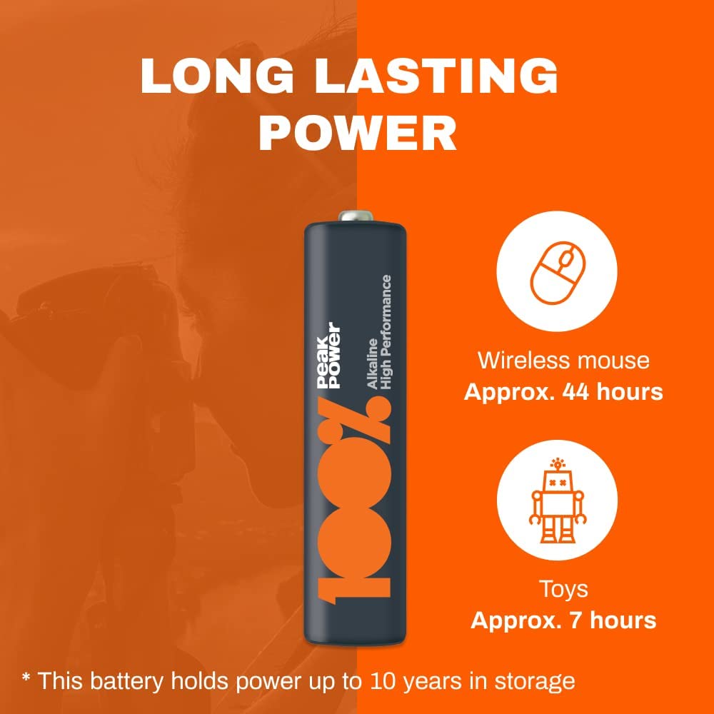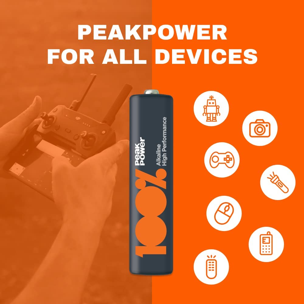 Piles AAA - Lot de 20| 100% PEAKPOWER | Batteries Alcalines AAA LR03 1,5v | Longue durée, haute performan