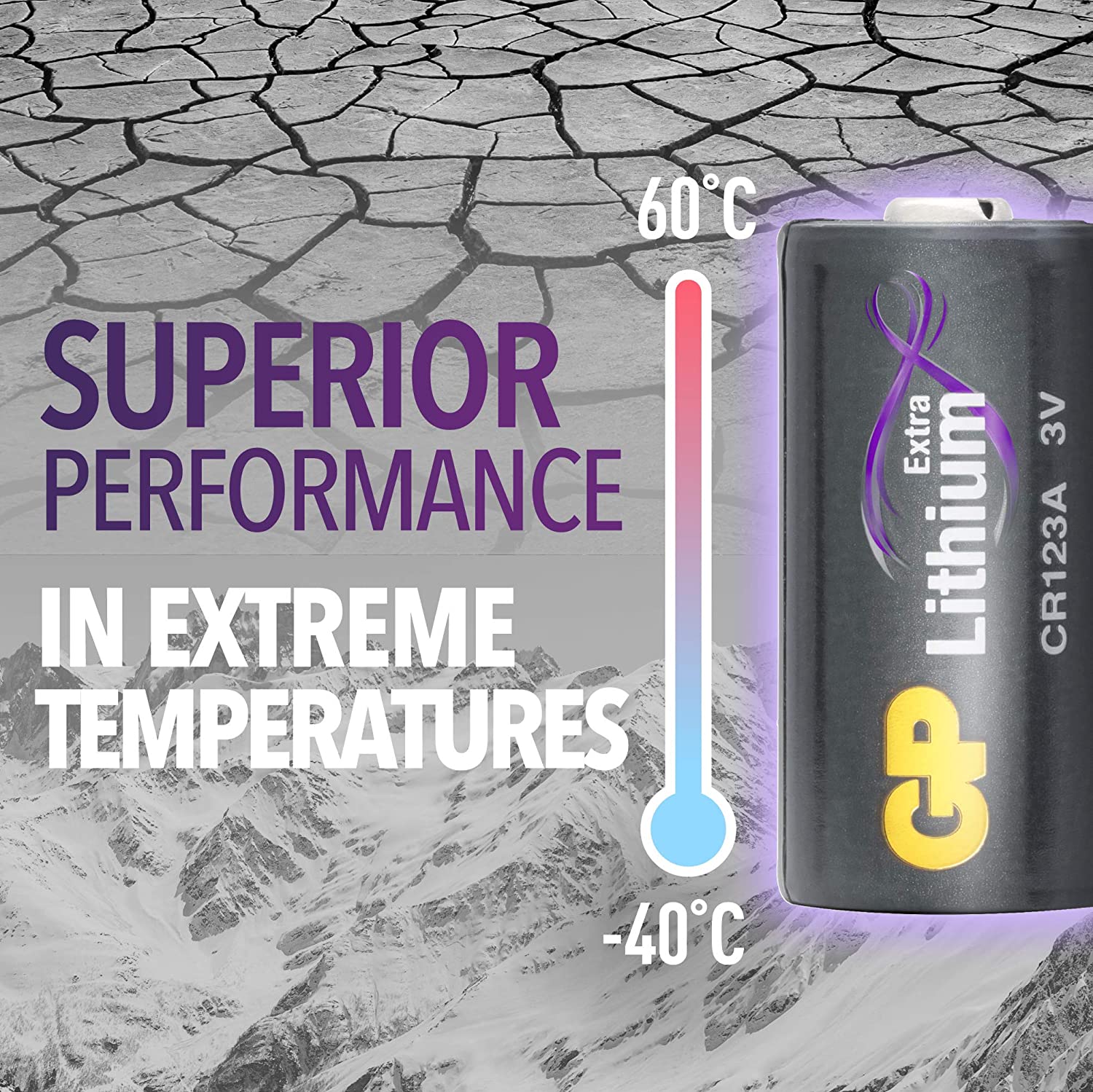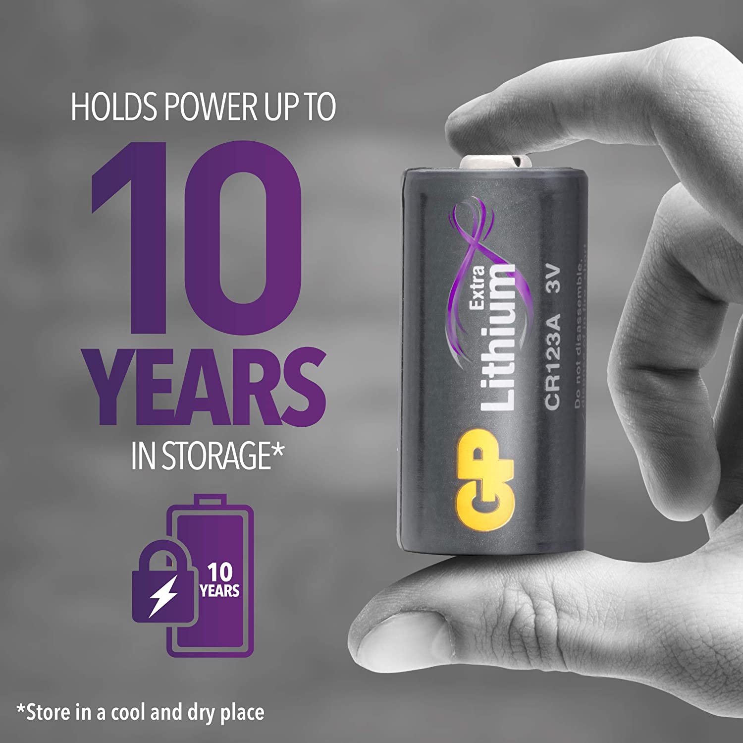Piles CR123A - Lot de 10 Piles | GP Extra | Batteries Lithium CR 123A 3V - Longue durée et Haute Performa
