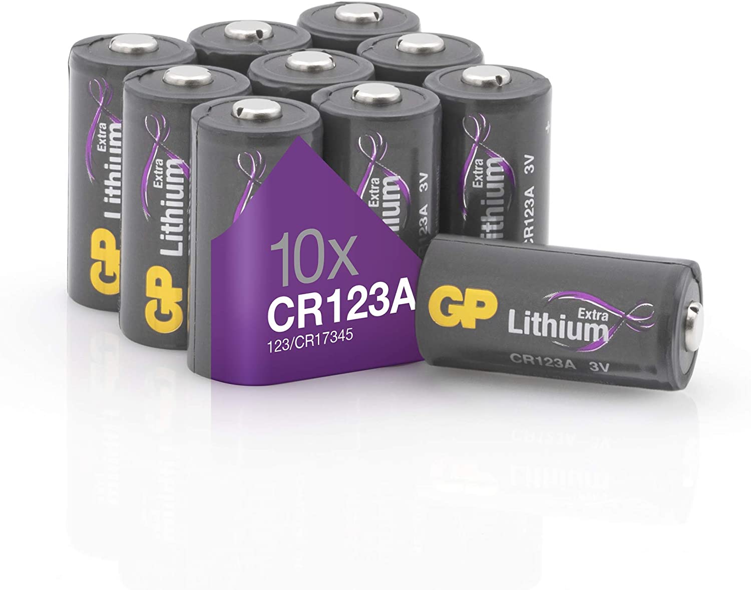Piles CR123A - Lot de 10 Piles | GP Extra | Batteries Lithium CR 123A 3V - Longue durée et Haute Performa