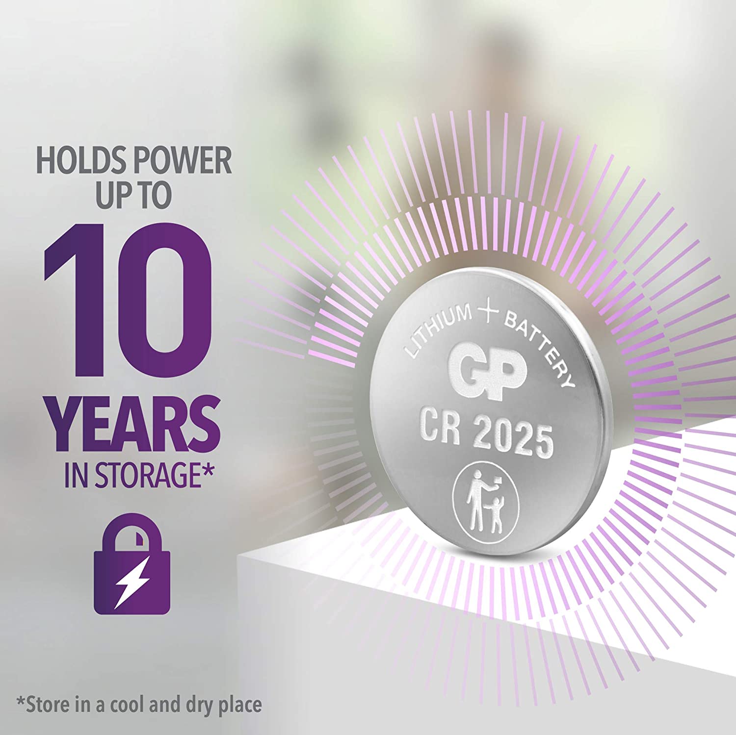Libellé Piles CR2025 - Lot de 10 Piles | GP Extra | Batteries CR 2025 Lithium 3v - Longue durée pour dispositifs Portables, Porte-clés