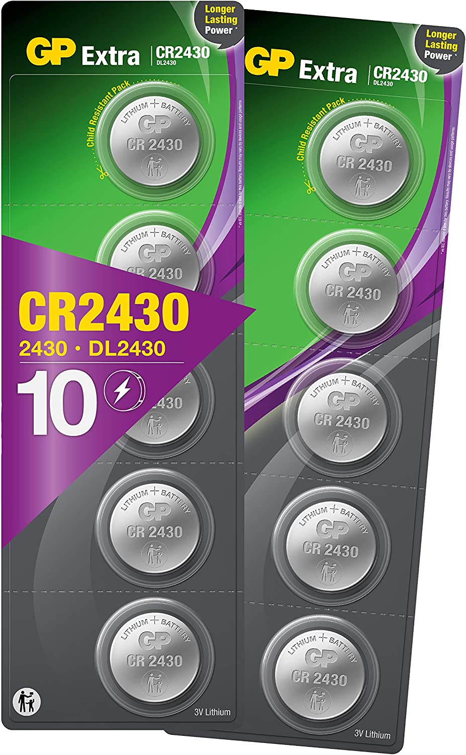 Piles CR2430 - Lot de 10 Piles | GP | Batteries 2431 Lithium 3V |Longue durée, très puissantes, utilisati