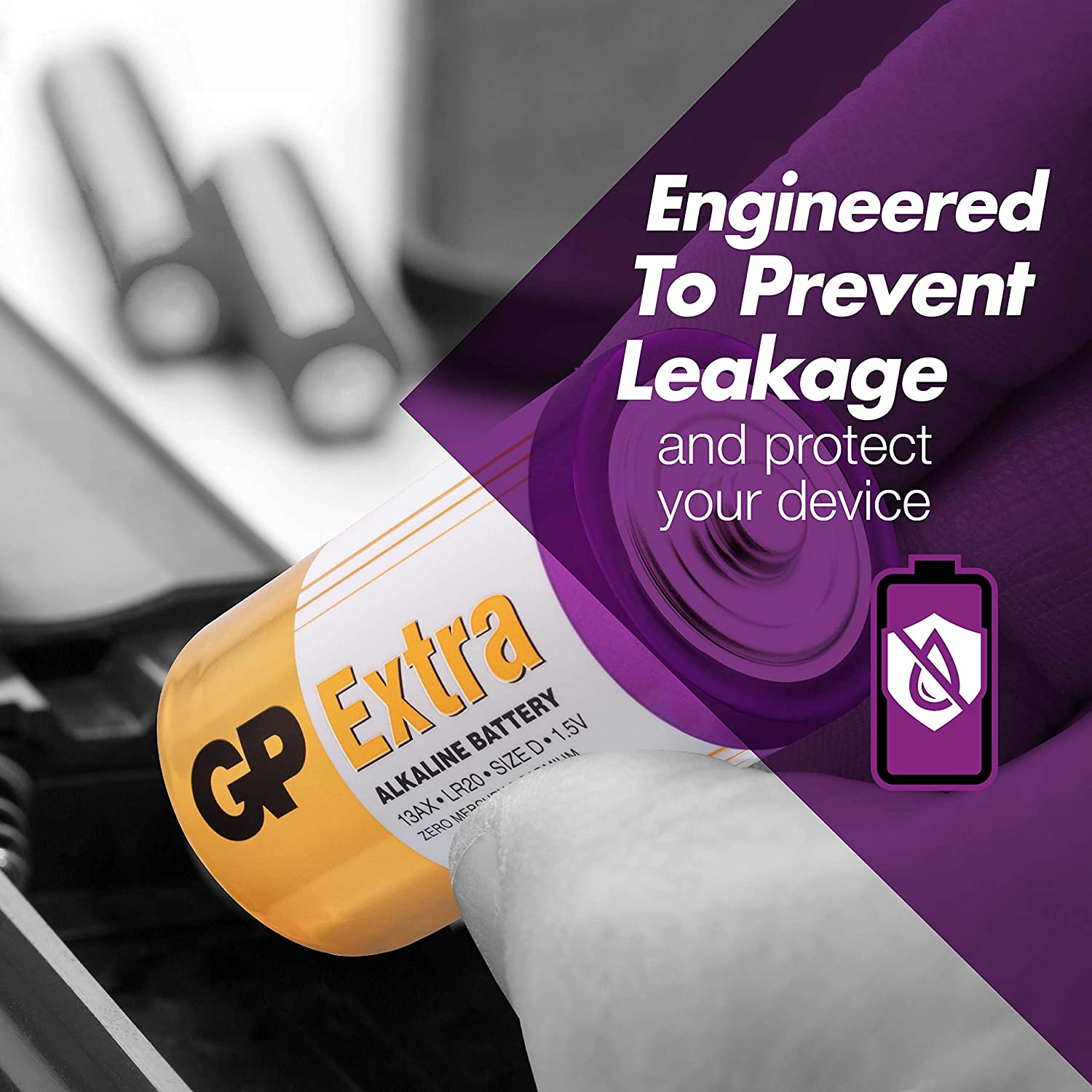 🔋 Lot de 8 piles du type D LR20 1,5V alcaline de GP EXTRA: haute performance, idéales pour une utilisation quotidienne dans tous vos appareils ⚡ Longue durée et conservation : La technologie est fiable et durable, vos piles conservent l’énergie jusqu’à 10 ans dans l'emballage d'origine ⭐Convient pour les moniteurs de bébé, les voitures / bateaux télécommandés, talkies-walkies, lampes de poche, capteurs LED, systèmes d'alarme, jouets et les équipements audio tels que les radios, lecteurs CD ou haut-parleurs. 🔒 Sécurité anti-fuites : vos piles sont prêtes à l'emploi et vous n'aurez plus à vous soucier des coulures qui pourraient endommager vos appareils 🌍 Les piles D sont également appelées ou remplaçables par : piles D, Mono, Mono Cells, LR 20, 13A, AM-1, AM1, MN1300, KD, 4020, ou piles 4120.