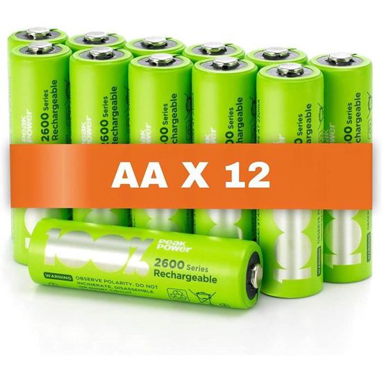 | Libellé | Piles Rechargeables AA - Lot de 12 Piles | 100% PEAKPOWER | Batteries AA LR6 Rechargeables 1.2v Minh 2300 mAh | Pré-Chargées |