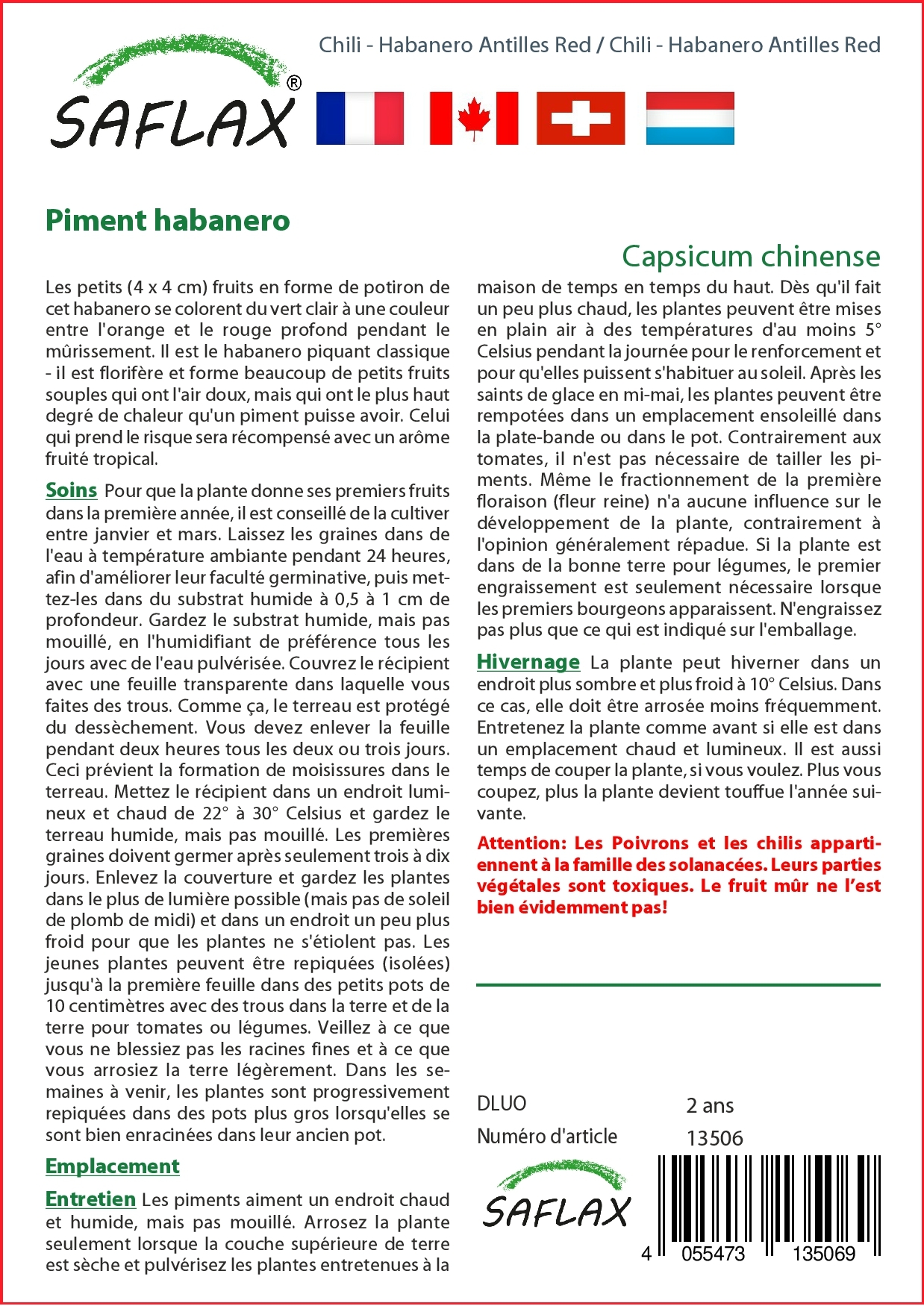 | Libellé | Piment habanero - 10 graines - Avec substrat de culture aseptique - Capsicum chinense |
