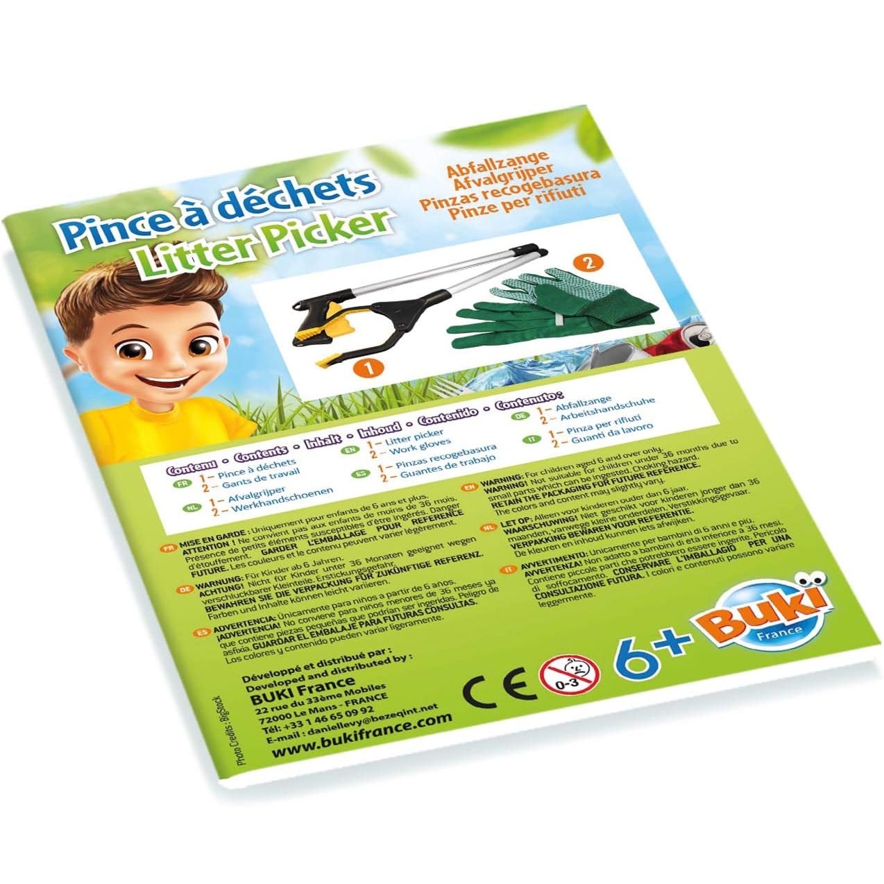 | Avertissements | Mise en garde : uniquement pour enfants de 6 ans et plus. Attention ! Ne convient pas aux enfants de moins de 36 mois. Présence de petits éléments susceptibles d'être ingérés. Danger d'étouffement. Attention ! Ne pas ramasser des objets dangereux, toxiques ou lourds. La surveillance d'un adulte est recommandée. |