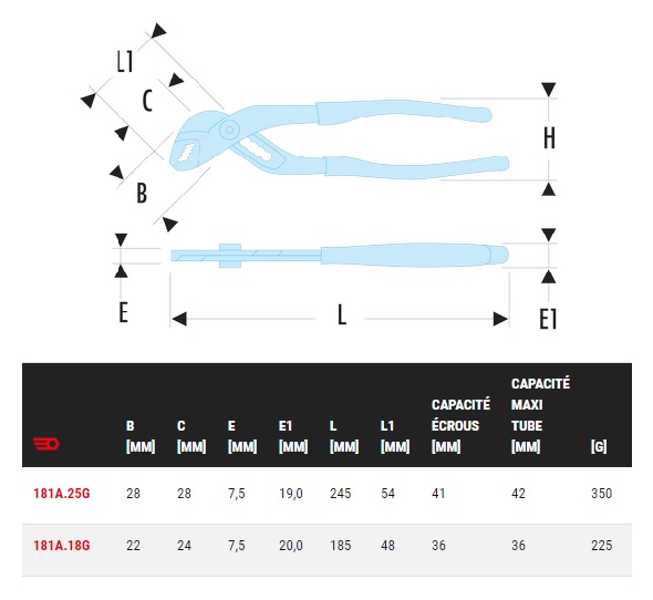 | Libellé | Pince multiprise à verrouillage 250mm - FACOM - 181A.25G |
