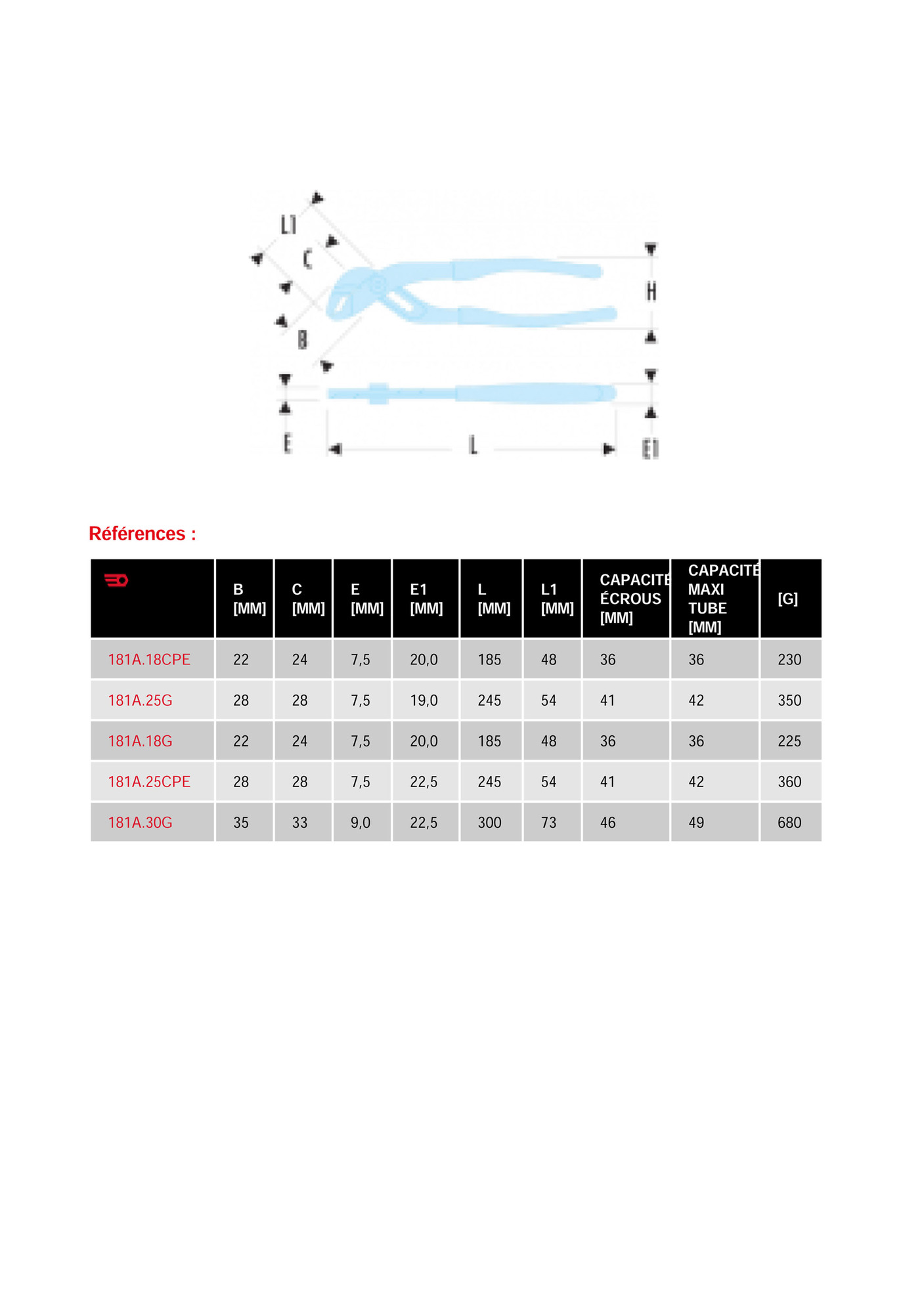 | Libellé | Pince multiprise entrepassée à verrouillage 180 x 22mm - FACOM - 181.18CPEPB |