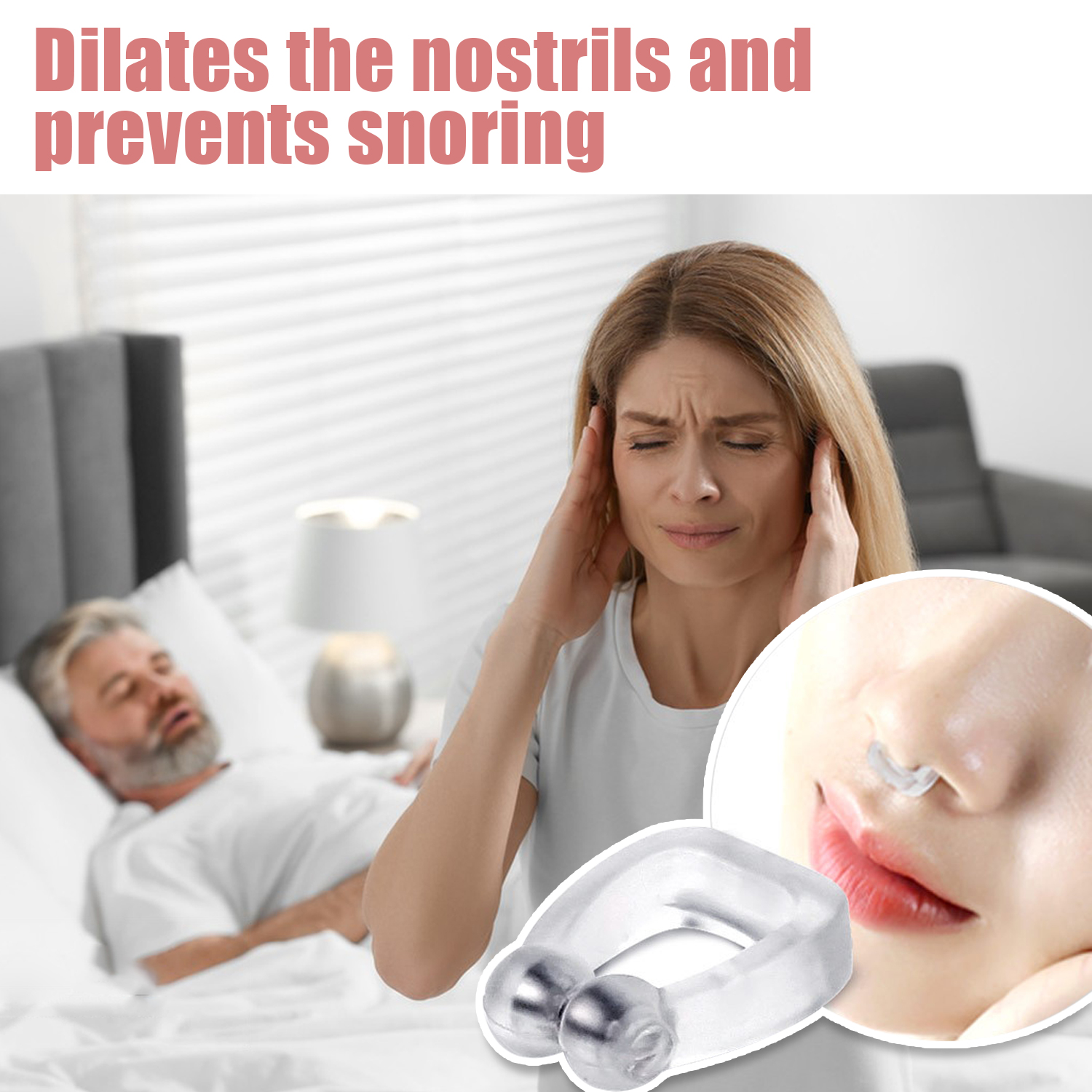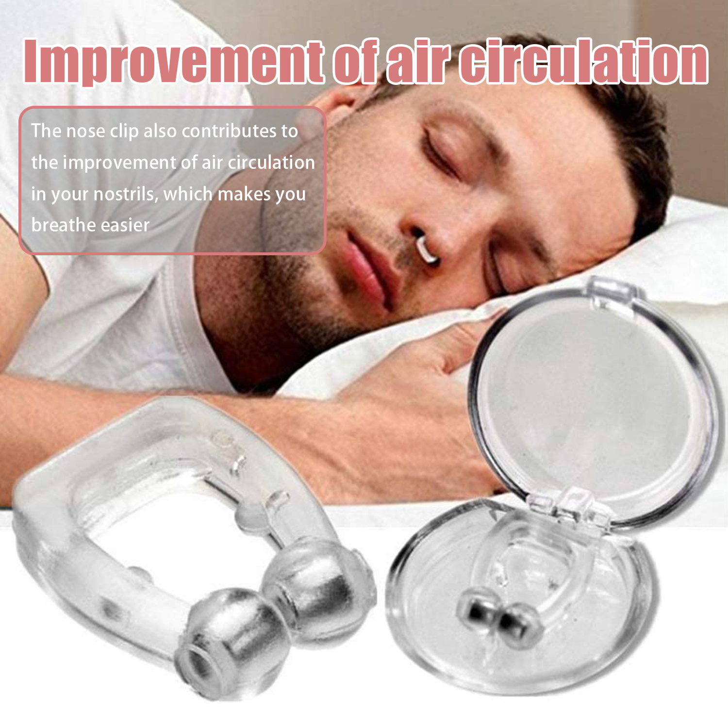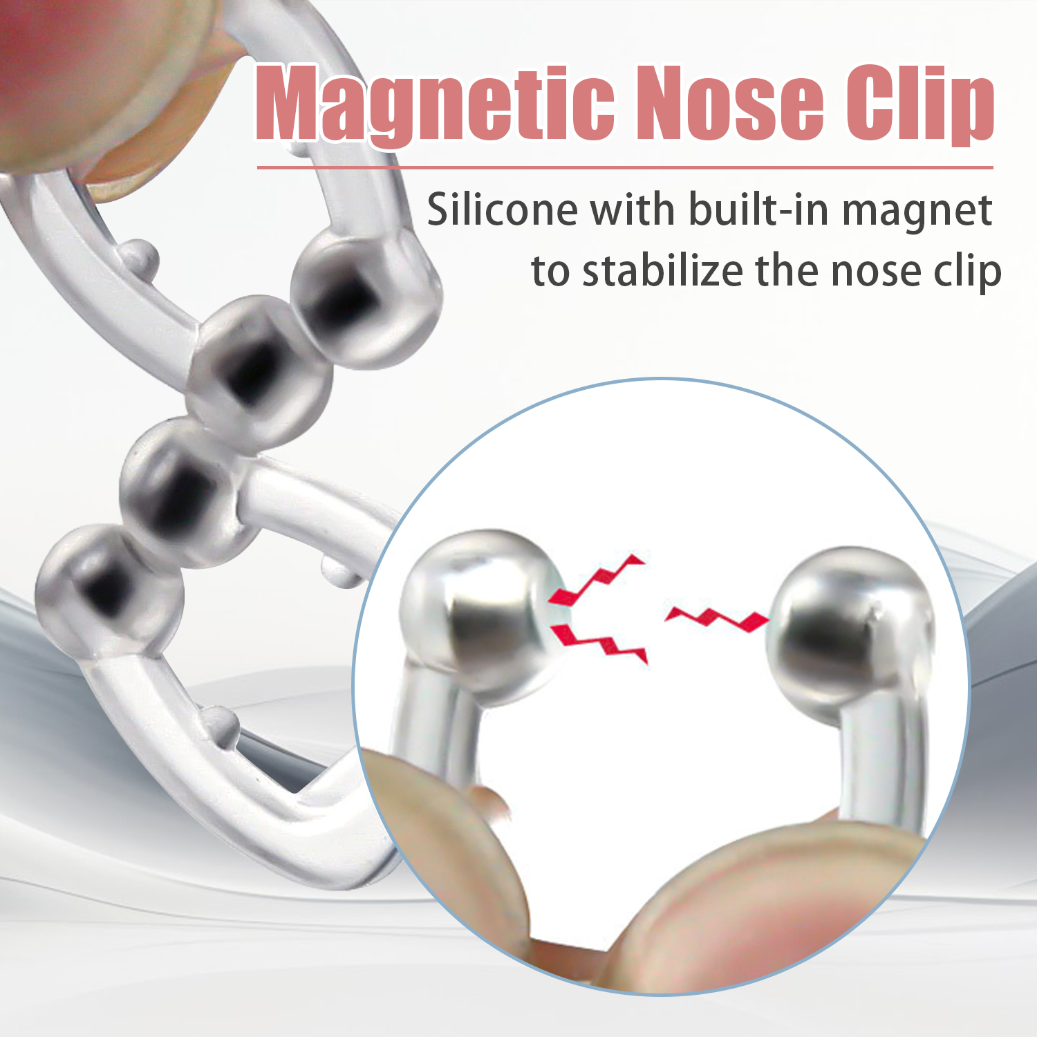 Empêcher le ronflement : Le point de pression sphérique associé à la force magnétique du pince-nez assure qu'une légère pression constante est formée contre l'intérieur des deux narines, ce qui améliore la dilatation des narines pendant la respiration pendant le sommeil. Cela empêche le ronflement.