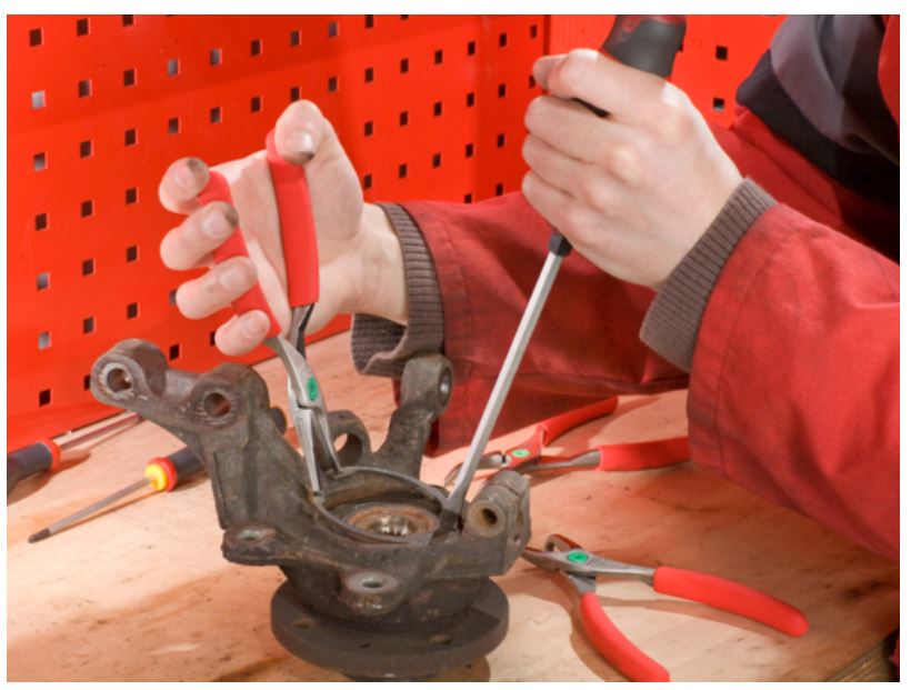 Les pinces pour Circlips® intérieurs à becs droits 179A de Facom sont munies d'embouts en corde à piano, renforcés pour une meilleure résistance à la déformation et pour limiter les risques de rupture. Les embouts sont également allongés et inclinés à un angle de 10°, ce qui assure une fixation optimale des circlips, provoquant ainsi les risques de torsion et d'échappement. De plus, elles sont codées par couleur pour indiquer l'ouverture et la fermeture, ce qui facilite leur identification dans la caisse à outils et permet de gagner en productivité. Pour un confort et une ergonomie accrus lors d'une utilisation intensive, ces pinces sont dotées de gains en PVC granité antidérapants qui réduisent les risques de glissement ou de perte pendant la manipulation.