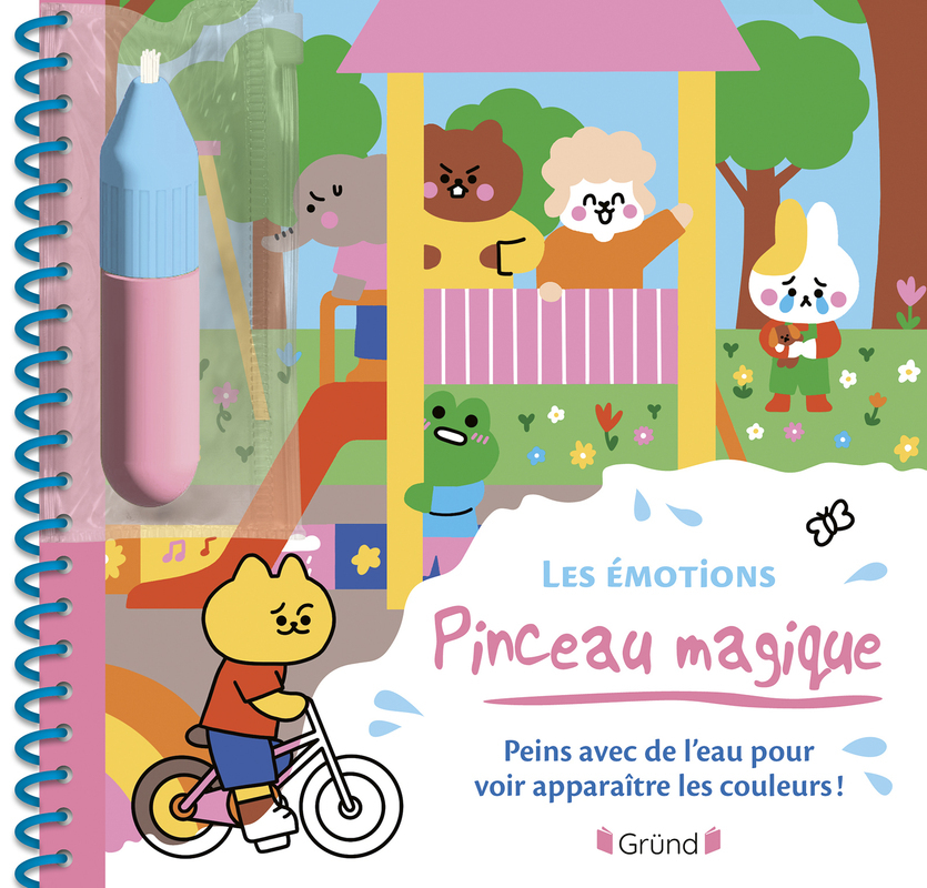 C'est magique ! Il te suffit de remplir ton pinceau avec de l'eau, puis de le passer sur les 6 décors de ton carnet pour voir apparaître en couleurs d'adorables illustrations sur les émotions : la tristesse, la joie, la colère, la peur, la fierté... Attends un peu : les couleurs disparaissent à nouveau pour que tu puisses recommencer à l'infini !