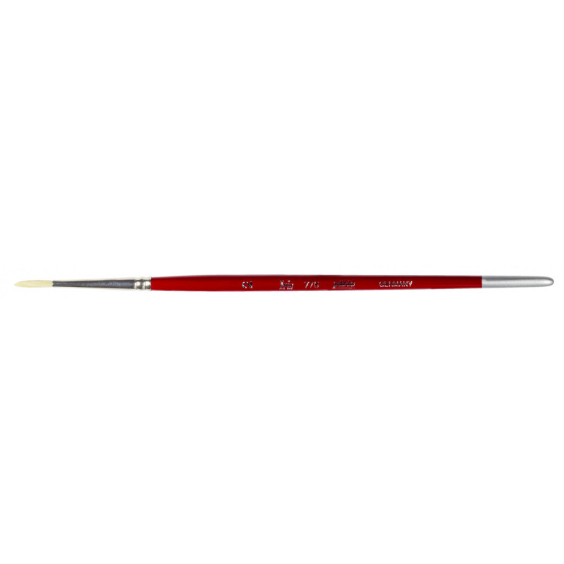 Cette forme ronde est particulièrement recommandée pour les travaux de précision : la pointe effilée permet de tracer des lignes fines et de travailler les détails avec finesse. En exerçant une pression, le pinceau s'élargit subtilement pour offrir un geste plus large, parfait pour les effets de texture ou les aplats dynamiques.