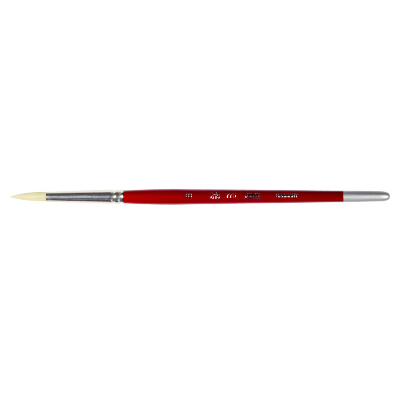 Cette forme ronde est particulièrement recommandée pour les travaux de précision : la pointe effilée permet de tracer des lignes fines et de travailler les détails avec finesse. En exerçant une pression, le pinceau s'élargit subtilement pour offrir un geste plus large, parfait pour les effets de texture ou les aplats dynamiques.