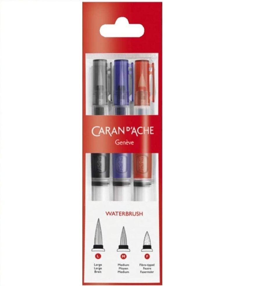 CARAN D'ACHE - Pinceaux aquarelle à réservoir d'eau - Set de 3  .