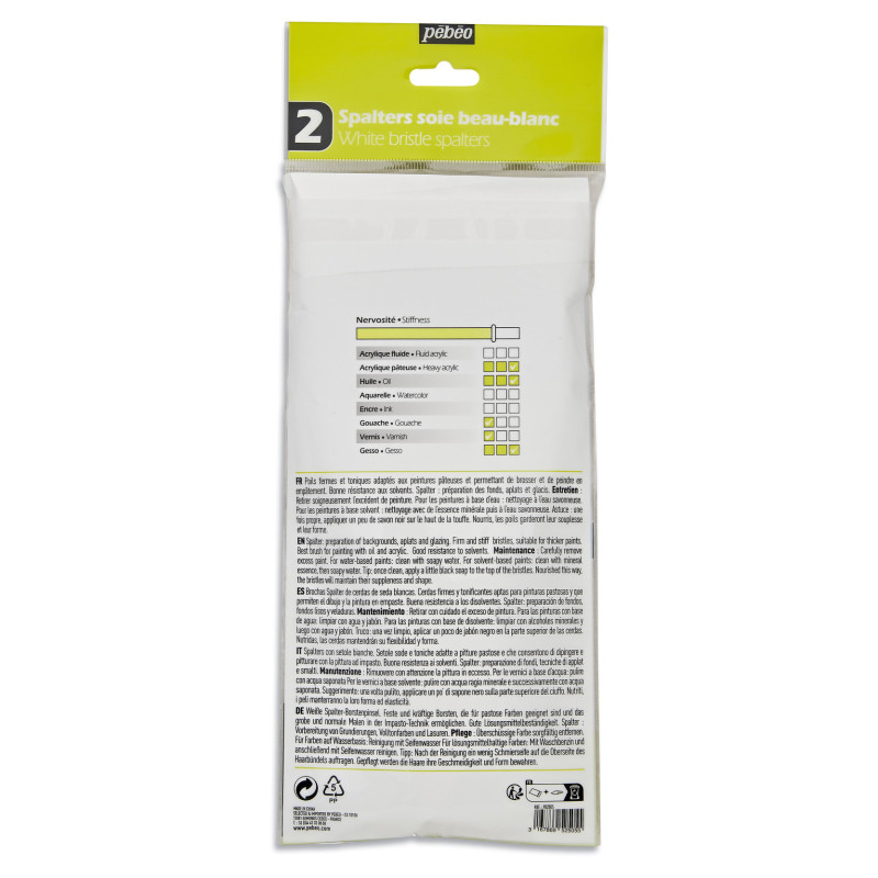 | Libellé | Pinceaux - Spalter - 2 tailles - Acrylique - Huile - Soie beau blanc - Pébéo |