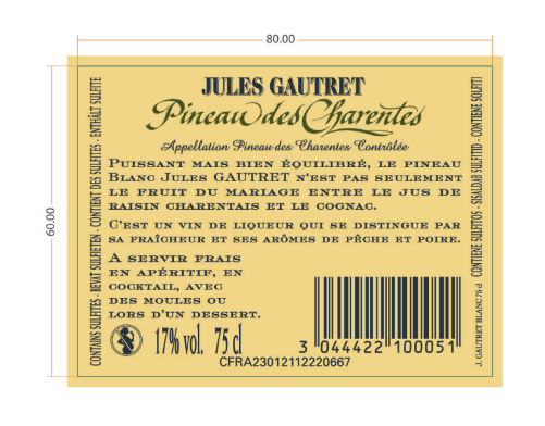 Libellé Pineau des Charentes AOP Jules Gautret - Blanc - 75 cl