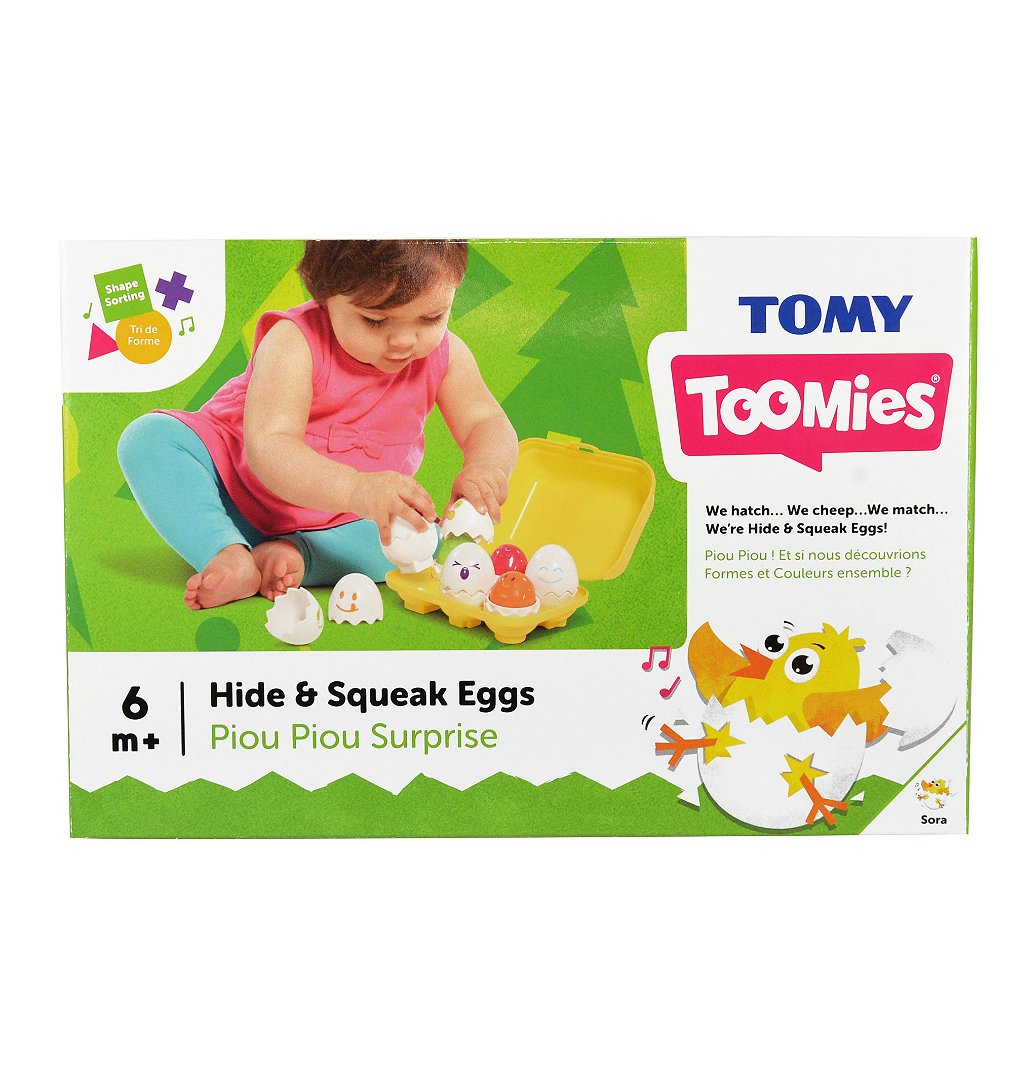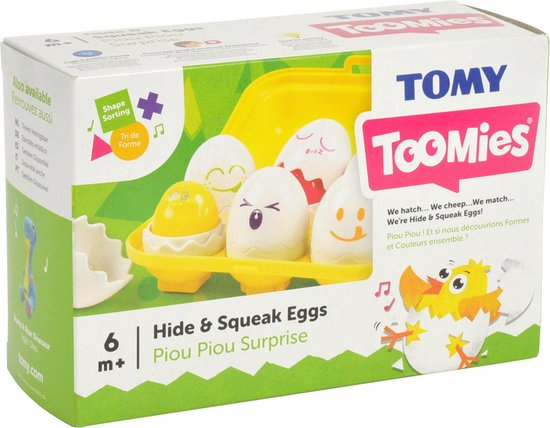 Comme ils sont mignons, ces petits poussins colorés ! Amusant : sous la coquille se cachent de drôles d’œufs de différentes couleurs qui font des Piou-Piou rigolos lorsqu’on appuie dessus. Développe les facultés d’association : l’enfant doit faire correspondre le dessin sur l’œuf avec celui sur la coquille. La boîte à œufs dispose d’un trieur de formes : le but est d’associer la base de chaque coquille à sa forme. Encourage la manipulation et développe la coordination : taille idéale pour les petites mains. Pratique : facile à transporter, ce jouet ne prend pas de place et se range facilement. Dès 6 mois. • Piou Piou ! Et si nous découvrions Formes et Couleurs ensemble ? 6 petits poussins cachés dans leurs coquilles et rangés dans la boîte à œufs. Lorsque bébé appuie sur chaque poussin, il émet un petit Piou-Piou rigolo. Quand il grandit, cela devient un trieur de forme avec un jeu de reconnaissance pour l’enfant : sous chaque coquille, une forme qu’il faut associer à celle de la boîte à œufs • Inclus : 1 boîte à formes "boîte à œufs", 6 œufs • A partir de 6 mois • Valeurs éducatives : découvertes des formes, éveil aux et initiation aux couleurs. Développement de la logique et stimulation de la mémoire