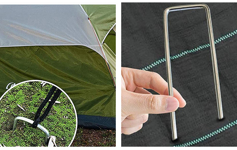 Les piquets de jardin en forme de U sont conçus pour une fixation sûre du tissu de sol et du film. Ces bâtons d'ancrage robustes et résistants aux intempéries sont polyvalents et peuvent également être utilisés comme supports de plantes, pour fixer des tuyaux, etc.