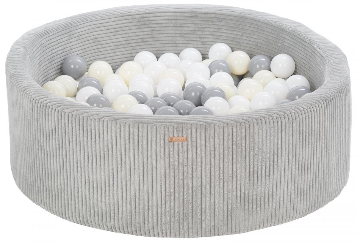 Piscine à balles ronde en velours côtelé avec 200 balles 90 cm gris/blanc, gris, jaune (pastel)