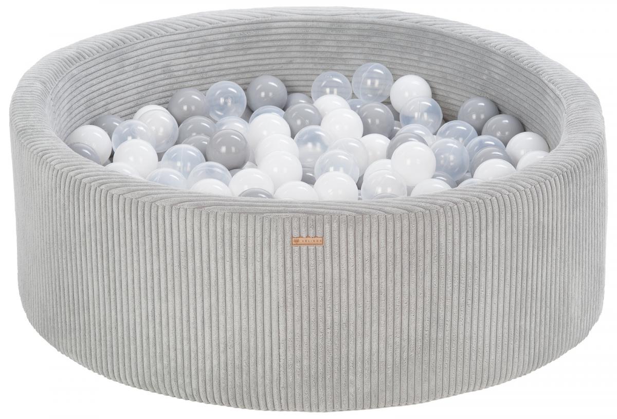 Piscine à balles ronde en velours côtelé avec 200 balles 90 cm gris/blanc, transparent, gris