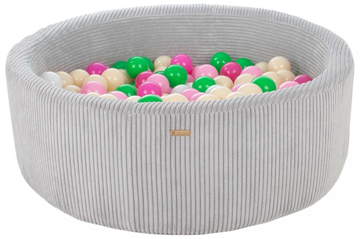 Piscine à balles ronde en velours côtelé avec 200 balles 90 cm gris/blanc, vert, rose, rose clair, cappuccino