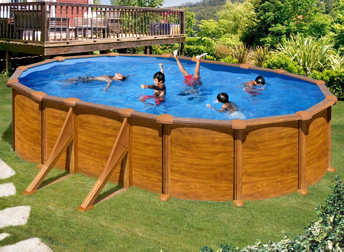Piscine acier aspect bois Mauritius ovale 6,34 x 3,99 x 1,32 m - Gré