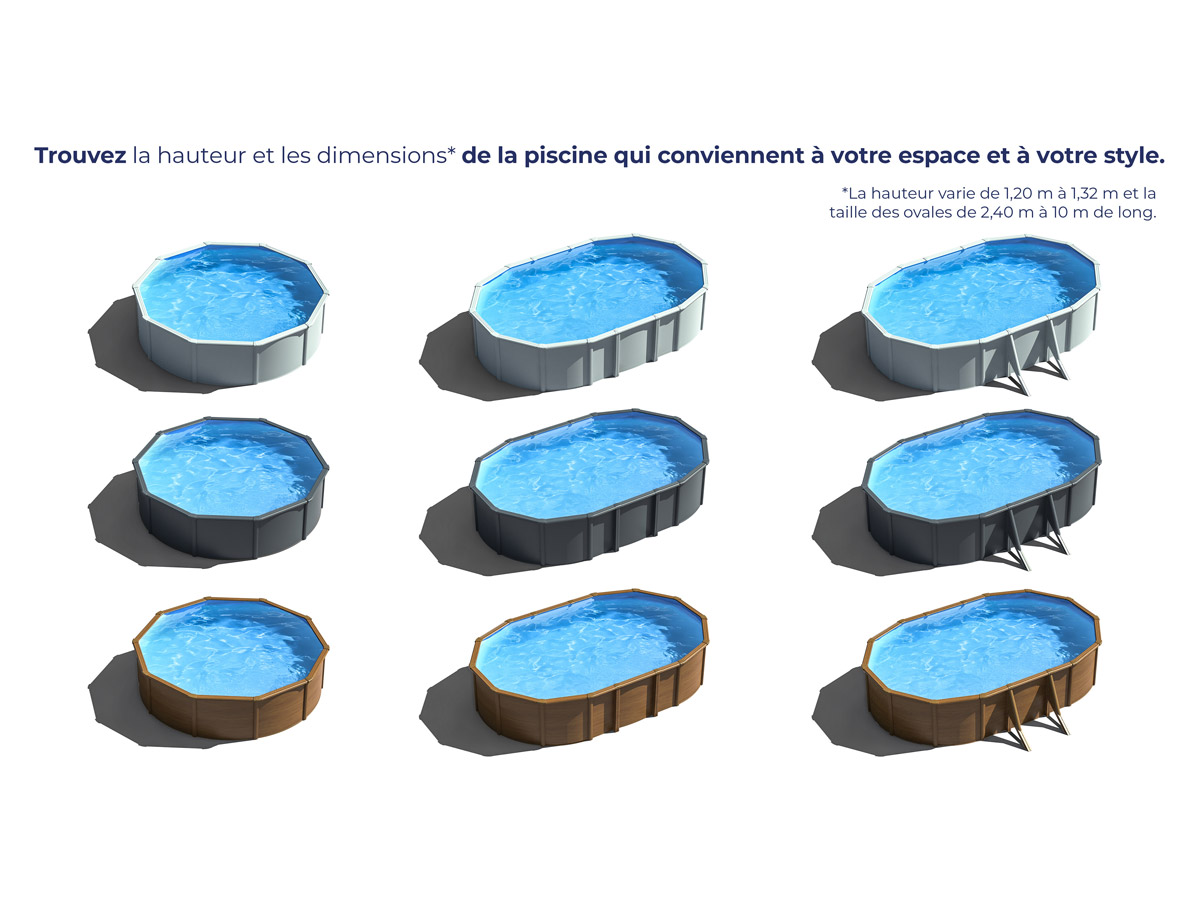 | Libellé | Piscine acier aspect bois Mauritius ovale 6,34 x 3,99 x 1,32 m - Gré |