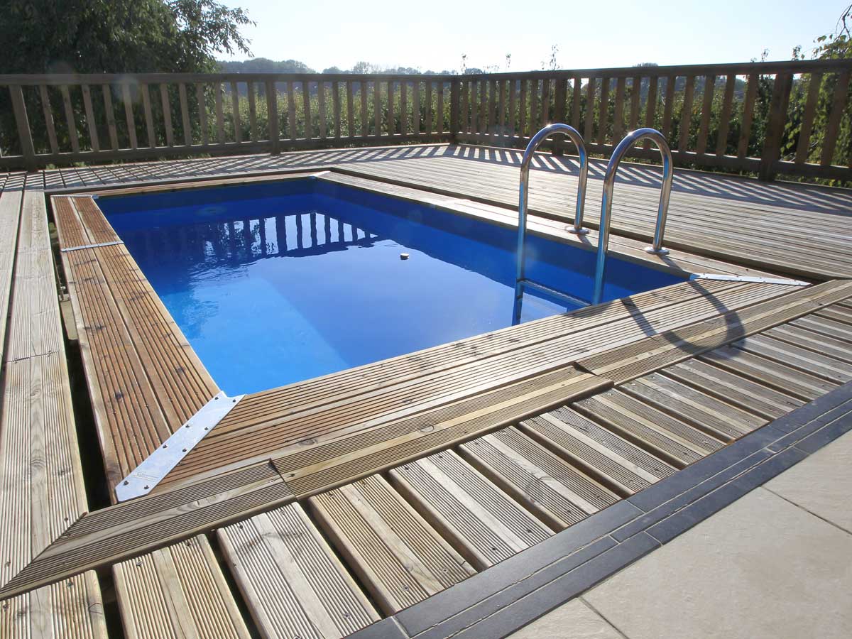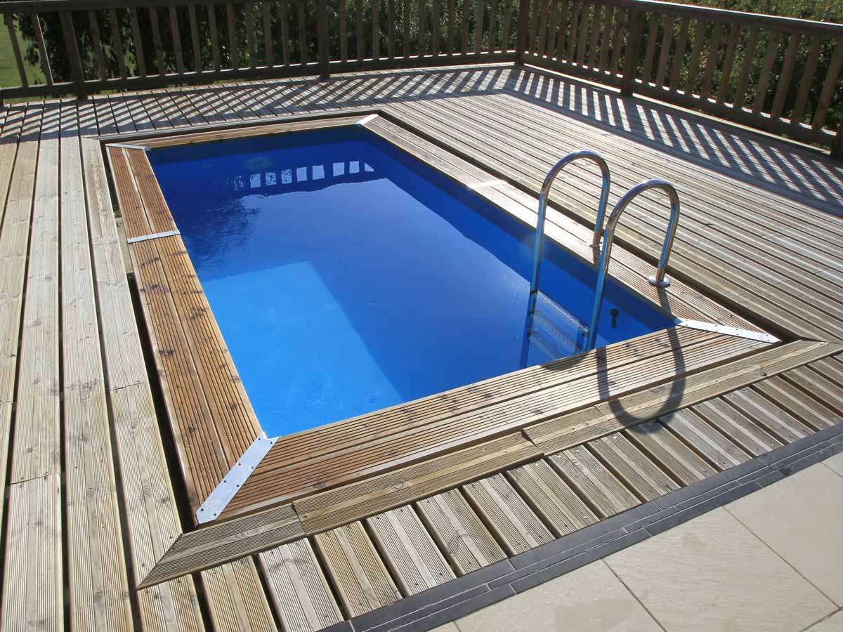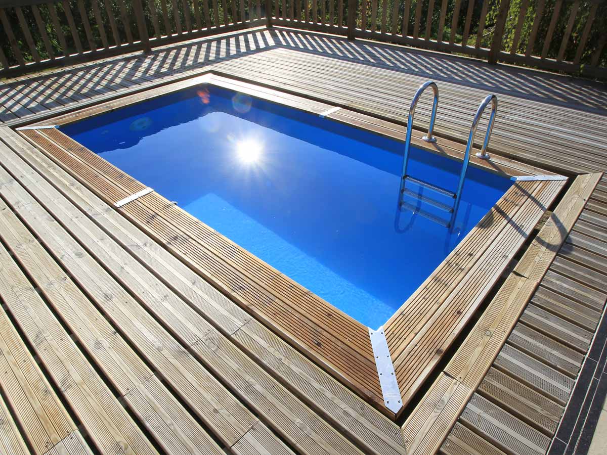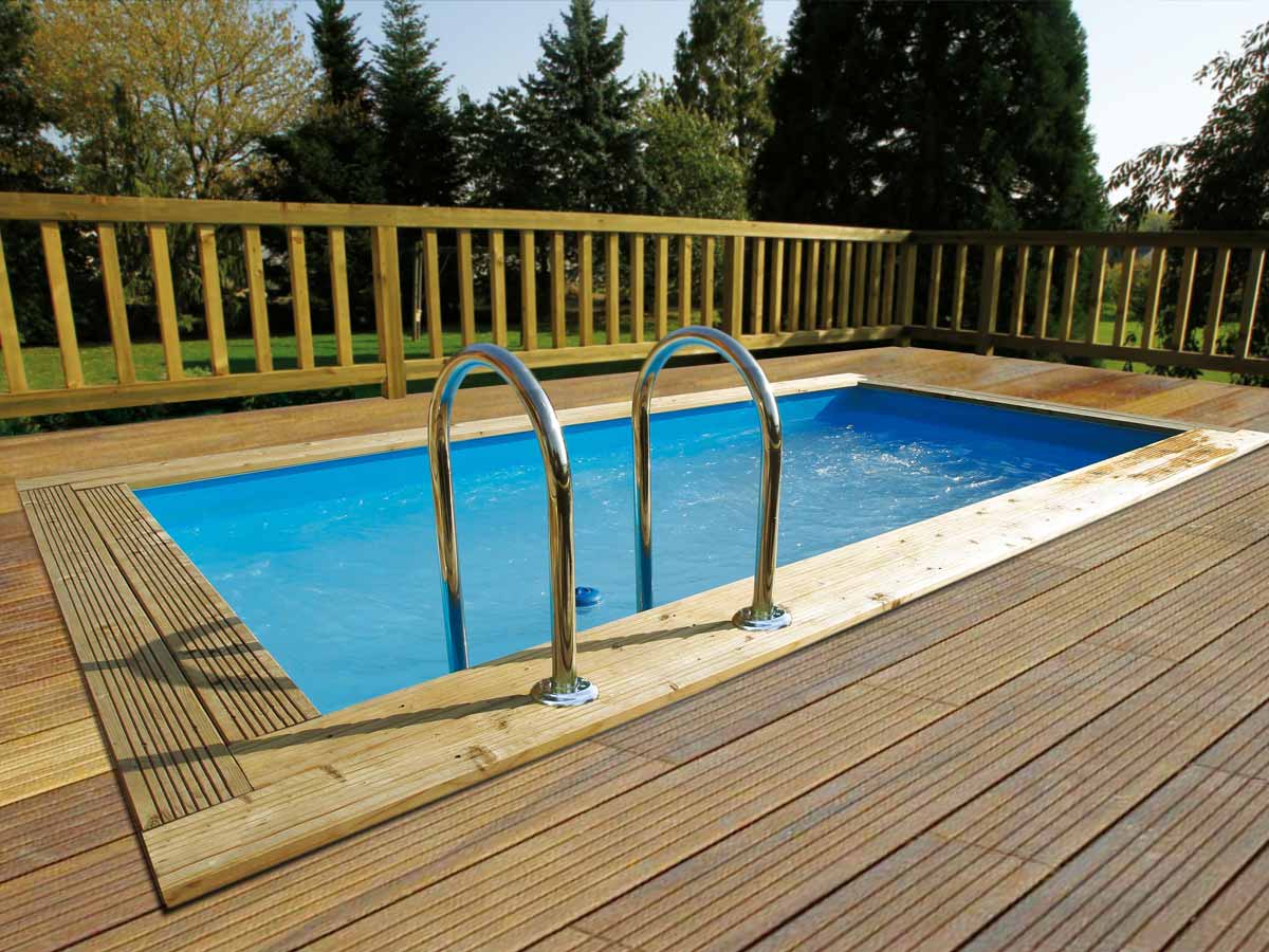 Piscine bois Azura 200 x 400 cm : compacte et élégante, idéale pour les petits jardins. Liner bleige 75/1