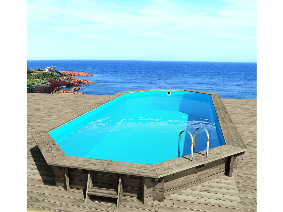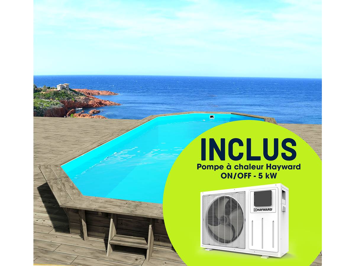 Piscine bois " Cancun " - 6.53 x 4.41 x 1.45 m + Pompe à chaleur - Puissance 6.1 kW -