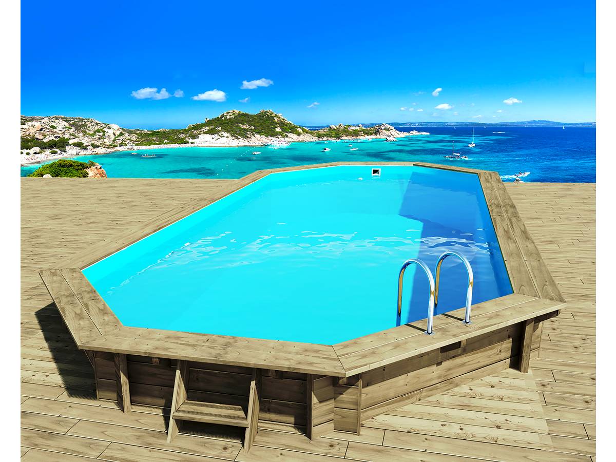 Cette piscine en bois Sevilla 130 vous permettra de passer un bel été en famille. Grâce à ses dimensions (8.57 x 4.57m) vous pourrez ainsi combiner la nage et la relaxation puis vos enfants se feront un plaisir de s'amuser avec des jeux aquatiques. A votre guise, vous pouvez l'installer hors sol, semi enterrée ou enterrée. La structure en bois se fondera parfaitement au milieu naturel de votre jardin.De forme octogonale allongée cette belle piscine de 8.57 x 4.57 x 1.31 m livrée avec de nombreux accessoires: un liner 75/100 ème, une filtration 8.3 m3/h, des margelles en pin . De plus, cette piscine est une production Européenne garantie FSC. Kit piscine bois du Nord hors sol octogonale allongée - 8.57 x 4.57 x 1.31 m - Pin traité autoclave classe 4 FSC - Liner 75/100 ème - Filtration 8.3 m3/h - Margelle en pin - Feutre de fond et de parois - Production Européenne - Pompe à chaleur 6.1 kW - Kit By Pass en option. .Structure: Piscine bois avec une structure en pin du Nord traitée en autoclave classe IV -