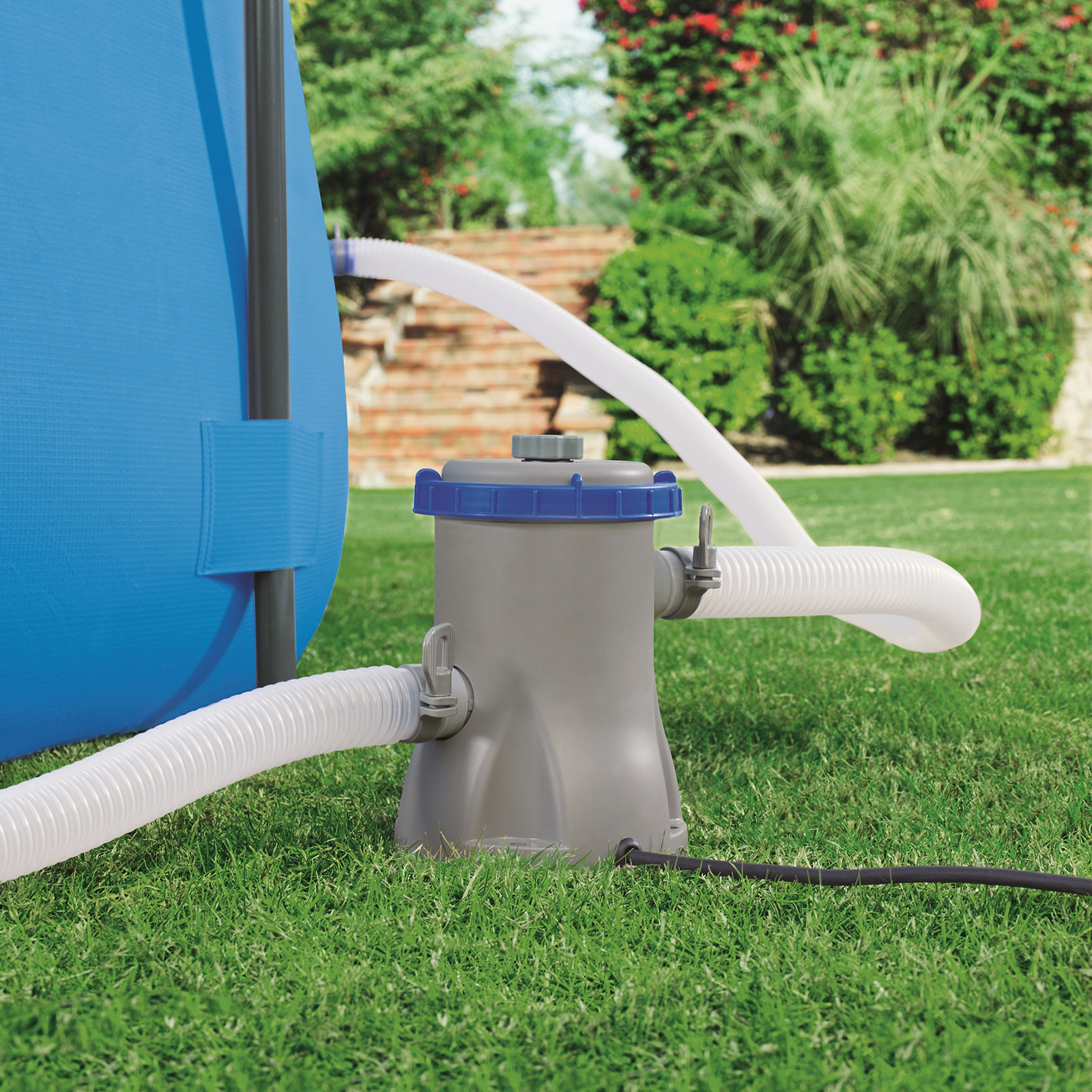 La piscine hors-sol est une alternative viable et idéale pour les personnes souhaitant se baigner tranquillement dans leur propre maison sans devoir recourir à des installations publiques ou privées qui sont souvent noires de monde. Fabriquée en PVC résistant et facile à installer, la piscine est équipée d'un patch de réparation, d'une pompe de filtration et d'une cartouche pour le recyclage de l'eau. Dimensions : 300 x 201 x 66 cm. Capacité : 3 300 L. - 1 piscine - 1 pompe avec filtre - 1 cartouche