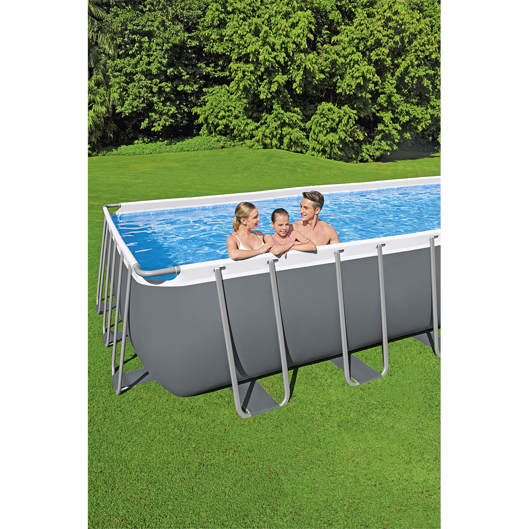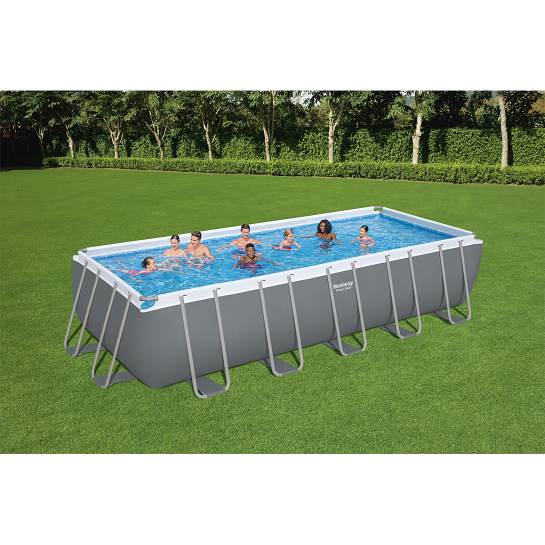 Vivez l’été dont vous (et vos enfants) avez toujours rêvé en installant une piscine hors sol dans votre jardin. Conçue pour durer, la piscine hors sol Power Steel™ de Bestway® est facile à monter. Structure résistante : La structure métallique anticorrosion est équipée de notre système Seal & Lock™, qui assure un raccordement solide et fiable de chaque pièce. Les connecteurs de protection empêchent les dommages causés par le contact métal sur métal qui provoque la rouille. Le solide liner Tritech™ est composé d’un matériau ultra-résistant triple couche renforcé pour plus de solidité et de résistance aux perforations. Le Tritech est 15 % plus résistant aux déchirures, 33 % plus résistant à la déformation et 83 % plus résistant à la perforation que le PVC classique, ce qui garantit que votre piscine durera été après été. Équipements complémentaires : Cette piscine hors sol est également fournie avec une pompe de filtration de 5 678 L, une échelle, une bâche de protection et un diffuseur de chlore automatique ChemConnect™. Le diffuseur ChemConnect™ libère uniformément et selon vos besoins la dose de chlore idéale dans votre piscine pour la maintenir toujours propre. Cette piscine s’intégrera parfaitement à votre jardin, avec son liner extérieur gris neutre et son liner intérieur au décor de mosaïque réaliste Ripple Mosaic™. Détendez-vous toute la journée au soleil avec cette piscine Power Steel™ !