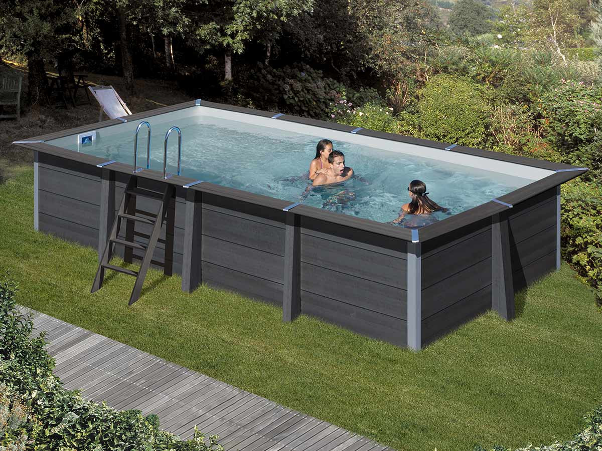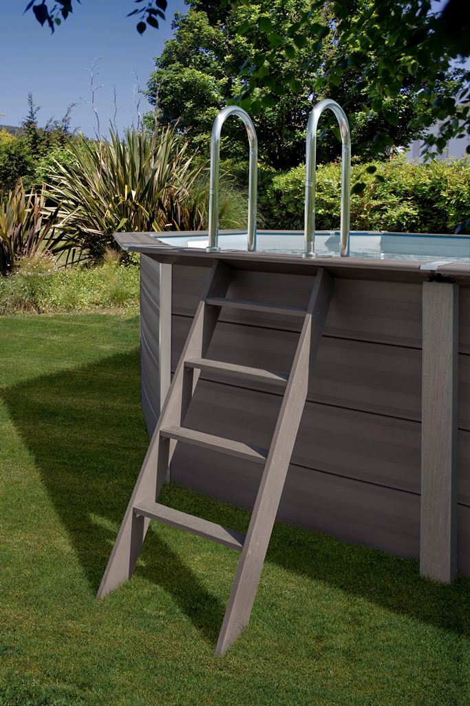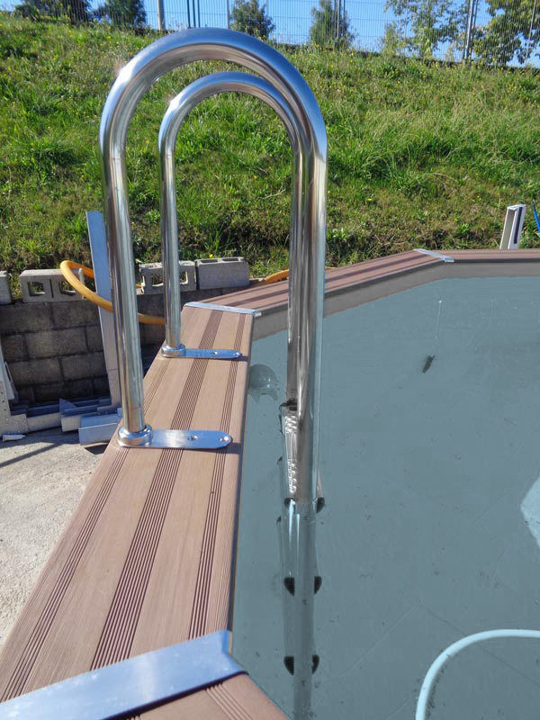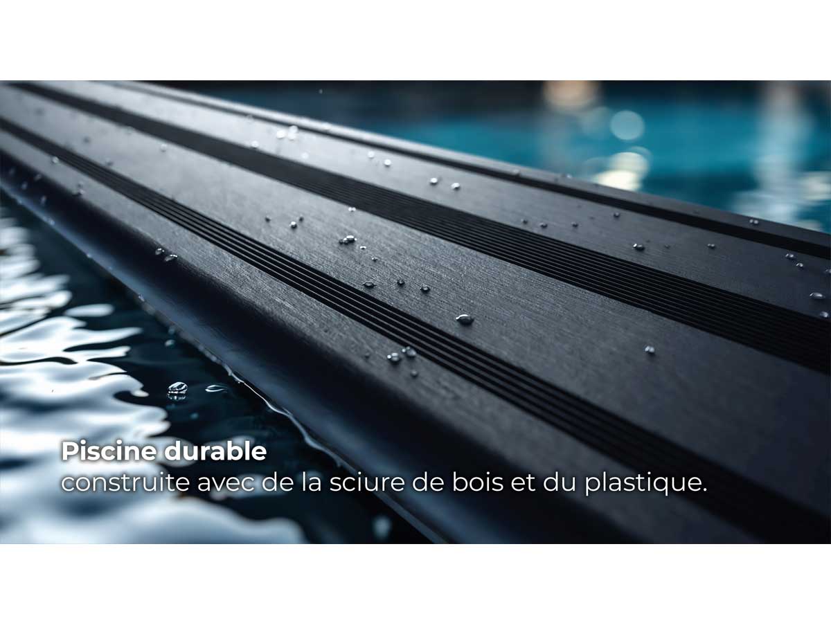 - Structure et margelles en composite avec rail Hung intégré, angle de jonction et caches angles en aluminium