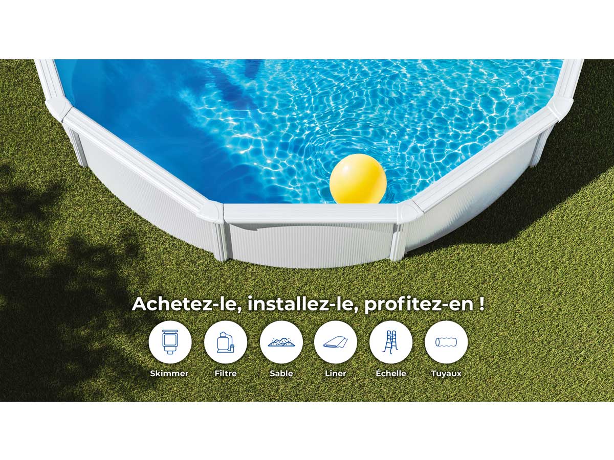 | Libellé | Piscine ronde acier diam.3,20m x H: 1,22m Filtration à cartouche |