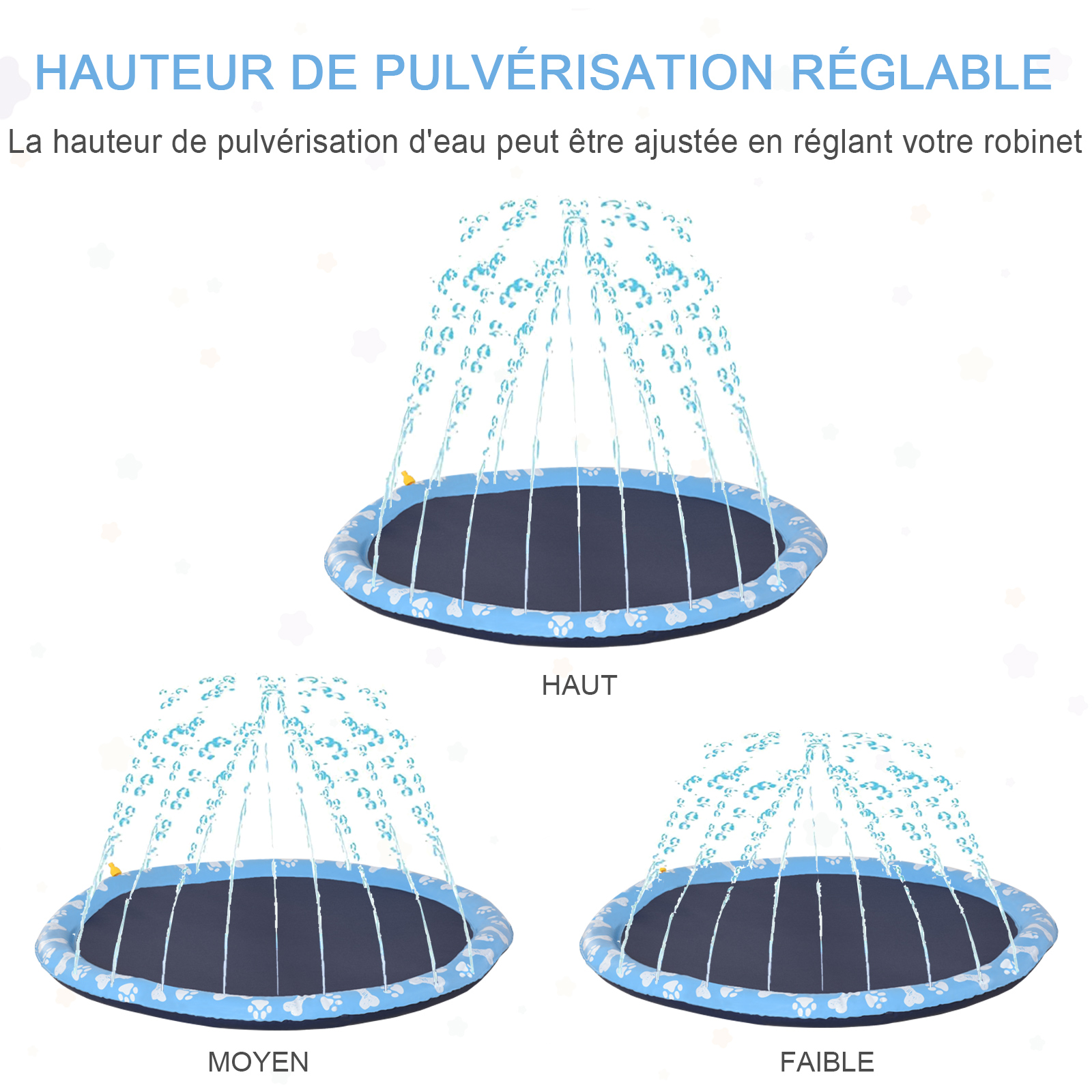 | Libellé | Piscine tapis à jet d'eau pour chien - diam. 1,5 m - pliable, facile à transporter - PVC bleu motifs os pattes |