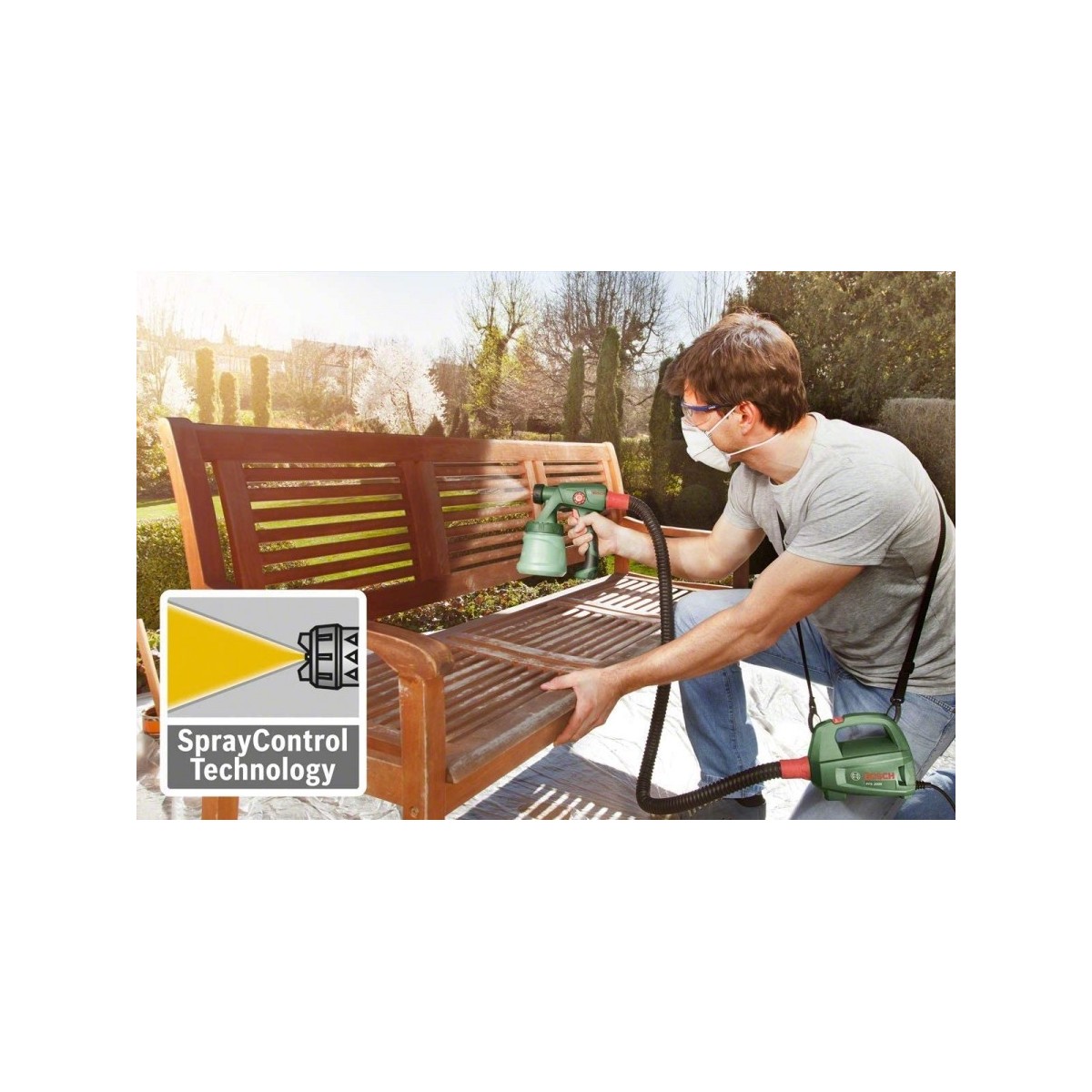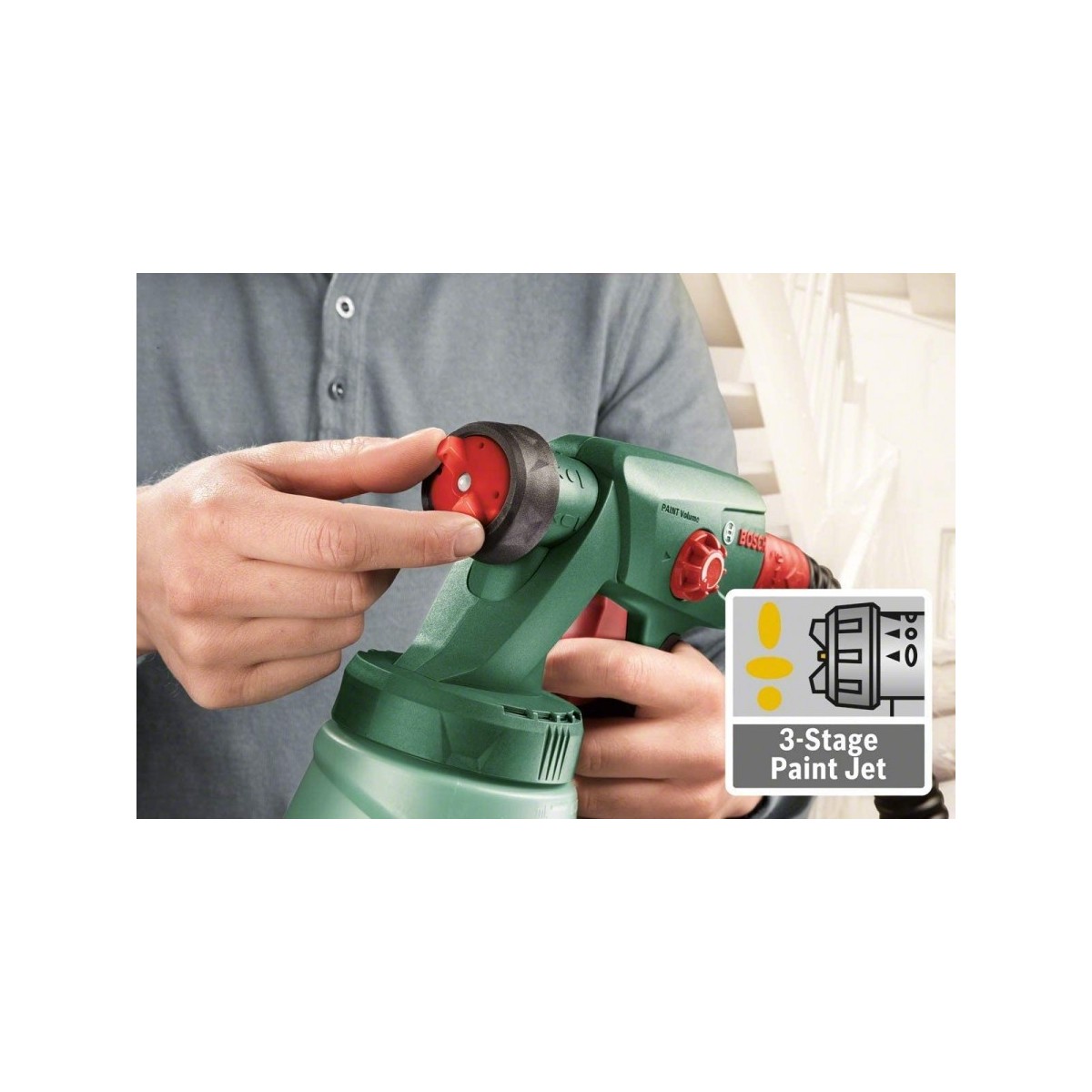 Les travaux de peinture et n'ont jamais été aussi faciles! Grâce au système de peinture en aérosol Bosch PFS 2000, les peintures et vernis transparents peuvent être appliqués en un clin d''il. Oubliez le pinceau et le rouleau! Vaporisez de la peinture rapidement et sans effort avec tous les types de peintures pour bois et métal sur la surface désirée sans taches ni gouttes de couleur.
