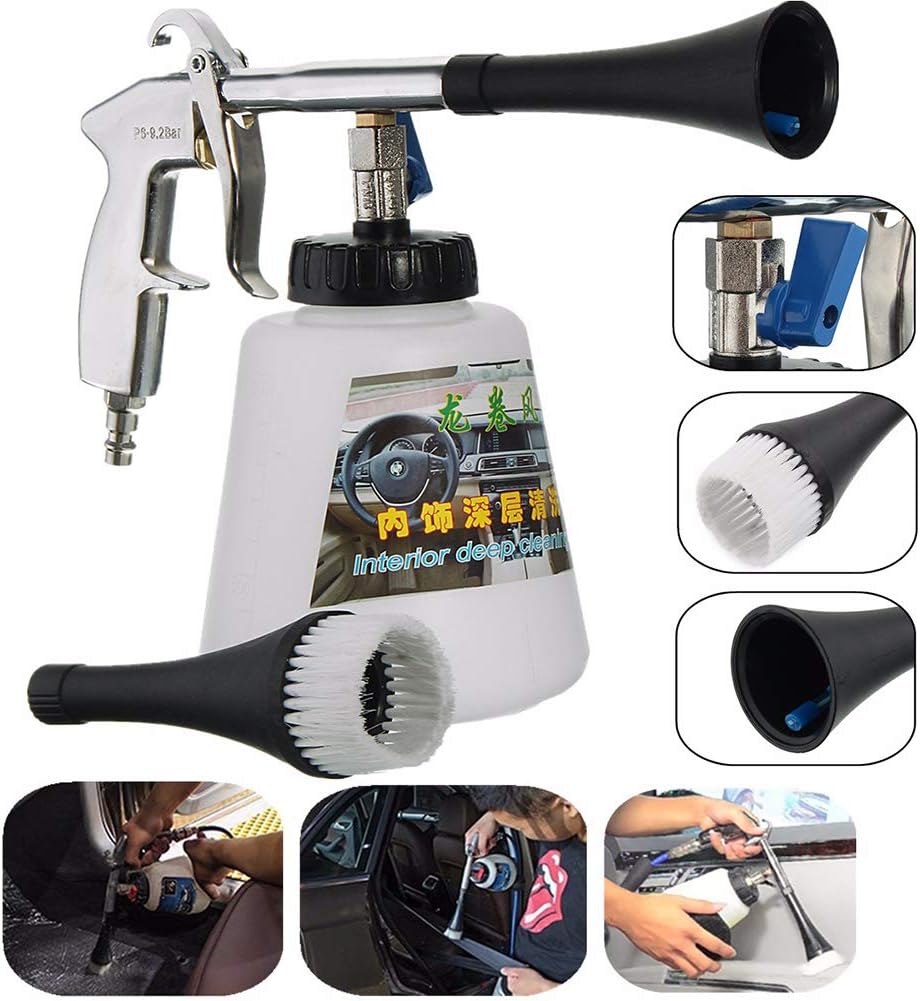 CARACTÉRISTIQUES : "Le pistolet de nettoyage haute pression pour l'intérieur de voiture est un outil essentiel pour les propriétaires de véhicules qui souhaitent maintenir l'intérieur de leur voiture propre et impeccable. Cet appareil est conçu pour offrir une solution de nettoyage efficace et pratique, permettant de traiter une variété de surfaces et de déloger la saleté, les taches et la crasse de votre véhicule. Puissance de Nettoyage Haute Pression : Ce pistolet de nettoyage génère une pression élevée, projetant un jet d'eau ou de liquide nettoyant à haute pression. Cette puissance de nettoyage permet de déloger efficacement la saleté, les taches tenaces et la poussière des surfaces intérieures de votre voiture. Polyvalence : Cet outil polyvalent peut être utilisé pour nettoyer une variété de surfaces à l'intérieur de votre voiture, y compris les tapis, les sièges en tissu, les panneaux de porte, les tapis de sol, les sièges en cuir, les consoles, les grilles d'aération, et bien plus encore. Accessoires et Brosses Interchangeables : La plupart des pistolets de nettoyage haute pression sont livrés avec un ensemble d'accessoires et de brosses interchangeables pour s'adapter aux différentes surfaces et aux besoins de nettoyage spécifiques. Ces accessoires facilitent le nettoyage des endroits difficiles d'accès. Économie de Temps et d'Efforts : L'utilisation de cet outil vous permet de gagner du temps et de l'énergie par rapport aux méthodes de nettoyage manuelles. Il élimine la nécessité de frotter manuellement et de dépenser de l'énergie pour obtenir un intérieur de voiture impeccable. Ergonomie et Facilité d'Utilisation : La conception ergonomique du pistolet de nettoyage garantit une prise en main confortable, réduisant la fatigue pendant le nettoyage. Les commandes simples permettent de régler la pression de l'eau ou de liquide nettoyant en fonction de la tâche à accomplir. En somme, le pistolet de nettoyage haute pression pour l'intérieur de voiture est un outil précieux pour les propriétaires de véhicules qui accordent de l'importance à la propreté de leur voiture. Il offre un nettoyage efficace, rapide et pratique, ce qui en fait un accessoire essentiel pour maintenir l'intérieur de votre voiture dans un état impeccable, que ce soit pour des raisons esthétiques, de confort ou de valeur de revente."