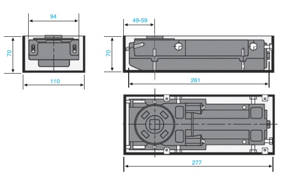 | Libellé | Pivot de sol 14-28Nm arrêt à 105° pour portes double action sans axe - MAB - 7700 |